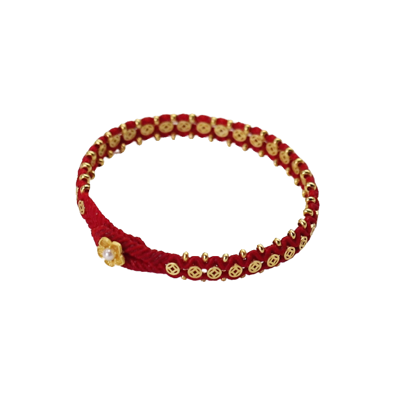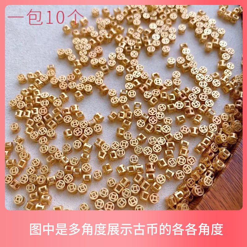📚 银镀金钱多多配饰 本命年红绳编织材料 小米珠斜卷结手绳装饰桶珠