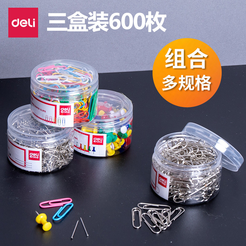 📚 得力金属回形针600枚曲别针彩色回形针学生手工文具彩色工字钉大头针组合三针一钉曲别扣针图钉工字钉盒装