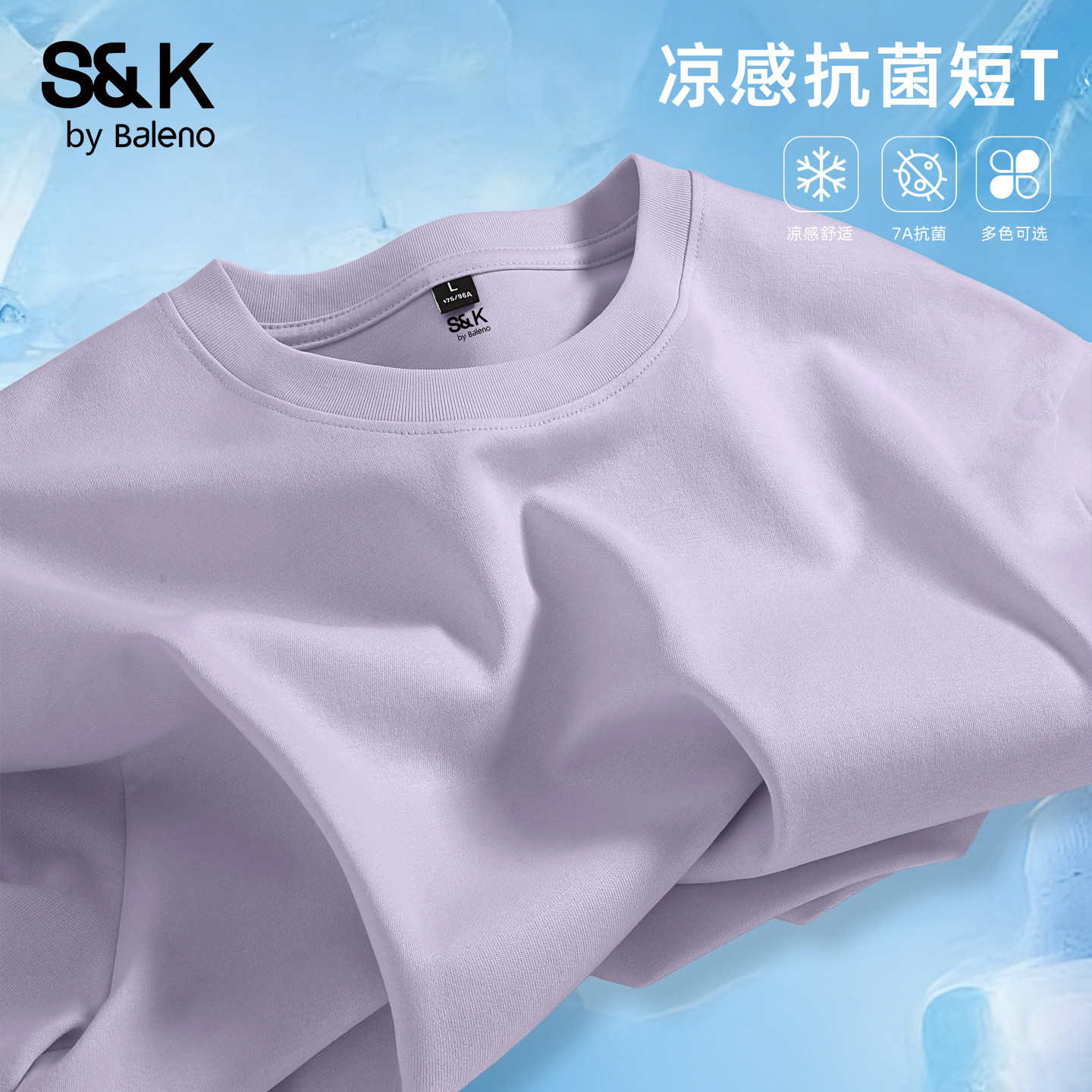 📚 班尼路S&K浅紫色t恤男短袖男款夏季情侣款户外运动凉感抗菌体恤A
