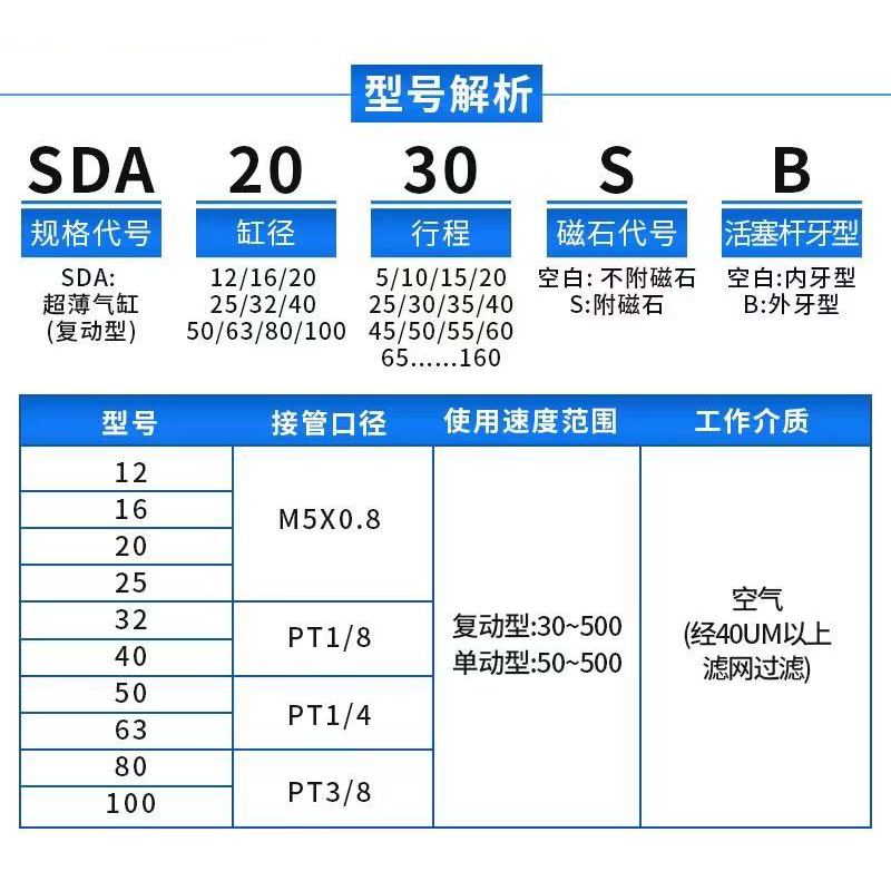 📚 小型大力推薄型气缸SDA20/25/32/40/50/63/80/100X*5/10/20/30/40