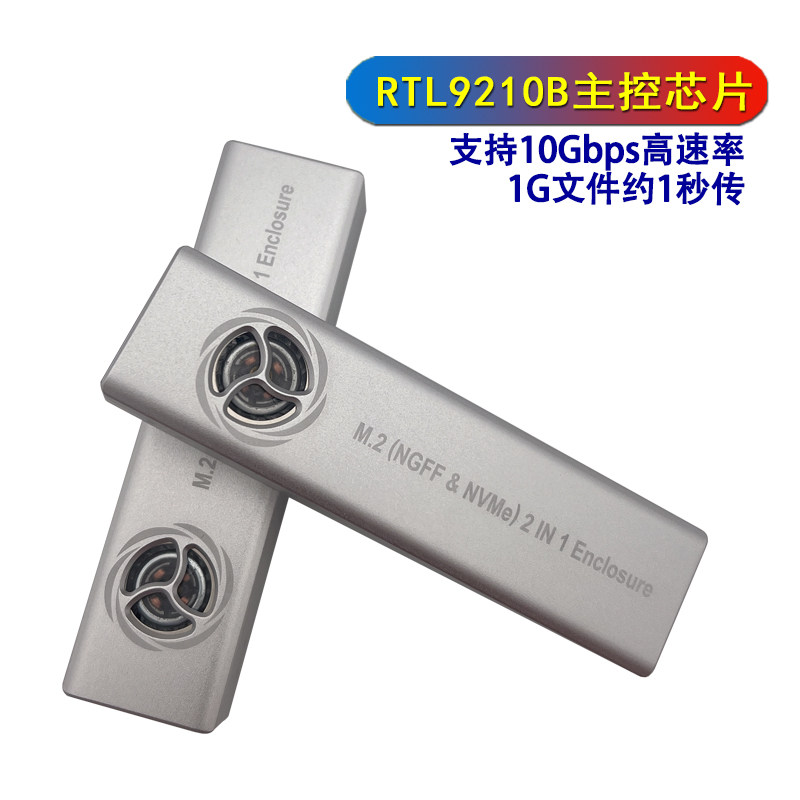 📚 带散热风扇M2固态硬盘盒RTL9210B主控NVMe双协议SATA铝免工具安装