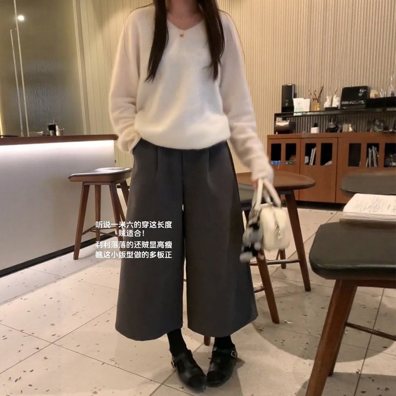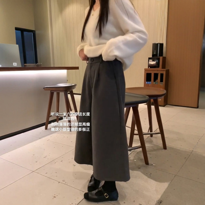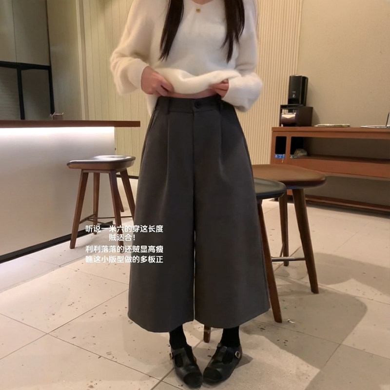📚 深灰色毛呢七分裤子大码女装秋冬小个子阔腿裤今年流行八分梧桐裤
