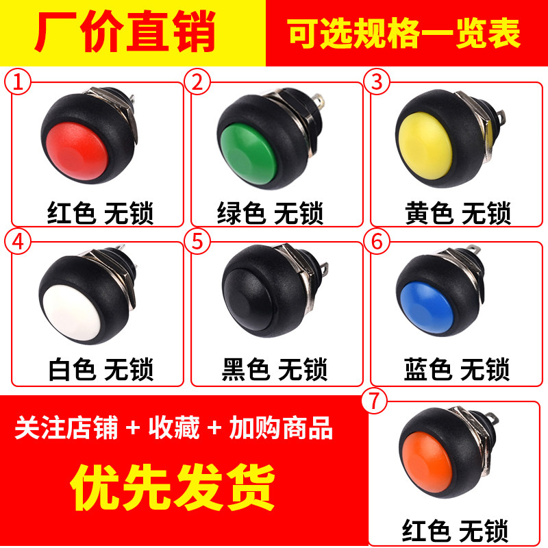#电源开关 #圆形小按钮开关 #防水 #PBS-33B #自复位启动 #启动触发点动 #12MM