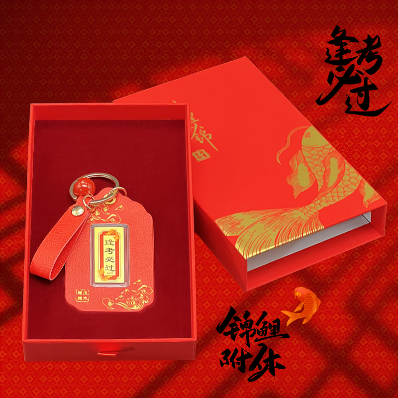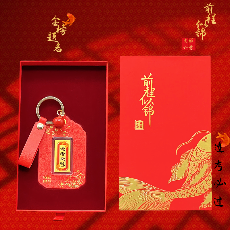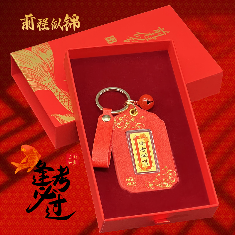 📚 含金新款考神金章逢考必过 前程似锦皮革铃铛钥匙扣挂件送礼饰品