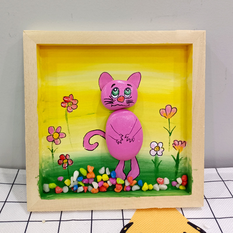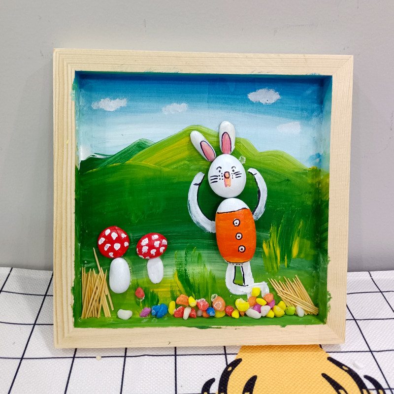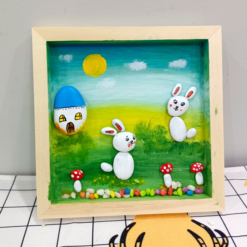 📚 小动物儿童小白兔卡通石头拼画成品学生美术亲子活动手工材料包
