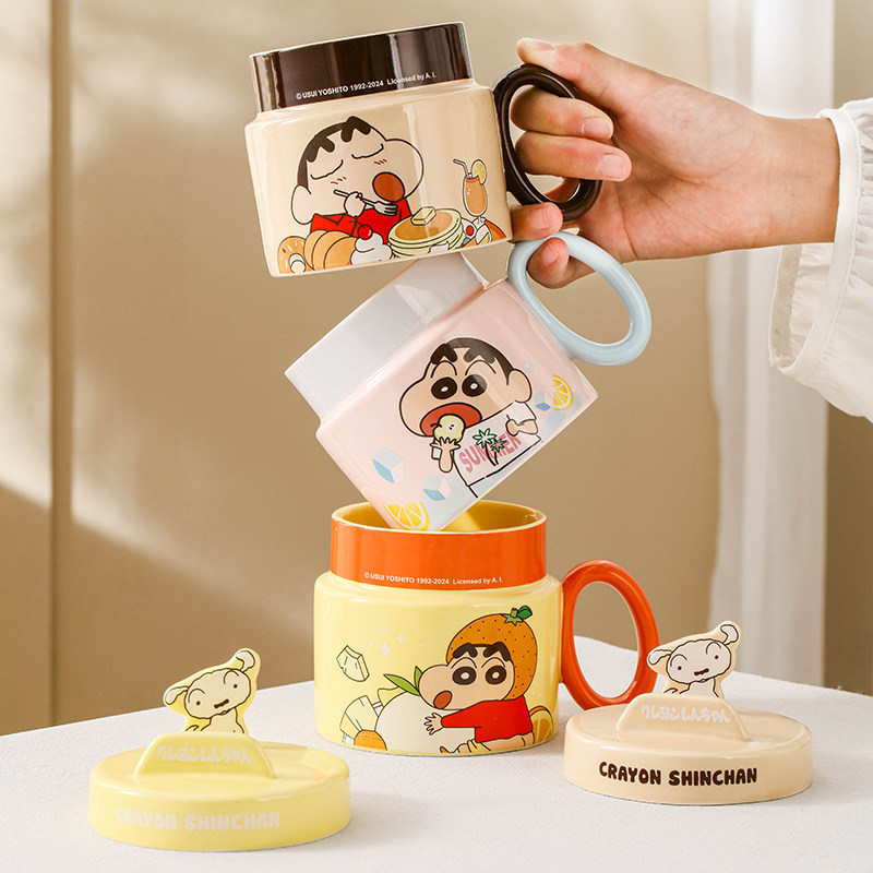 📚 【芭芭农场】蜡笔小新正版IP陶瓷马克杯带盖手机支架杯
