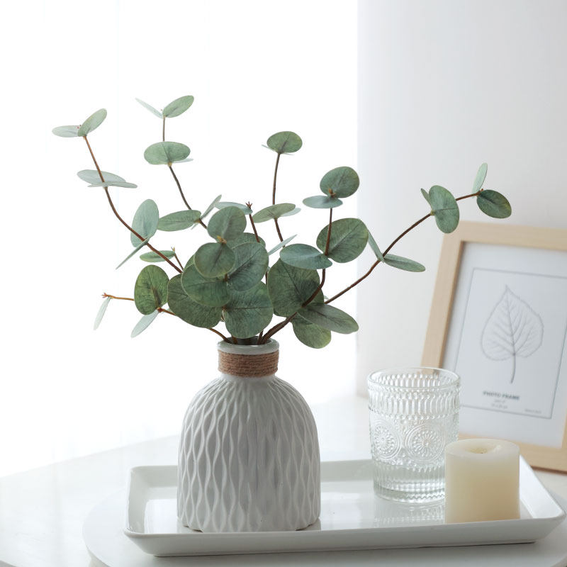 📚 ins北欧风小清新仿真尤加利金钱叶枝仿真绿植假花摆设装饰花摆件