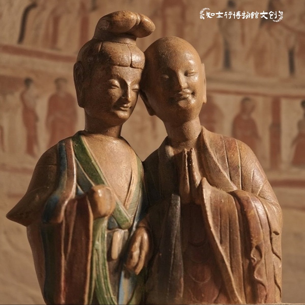 📚 麦积山石窟菩萨与比丘“窃窃私语”彩塑冰箱贴创意礼品甘肃纪念品