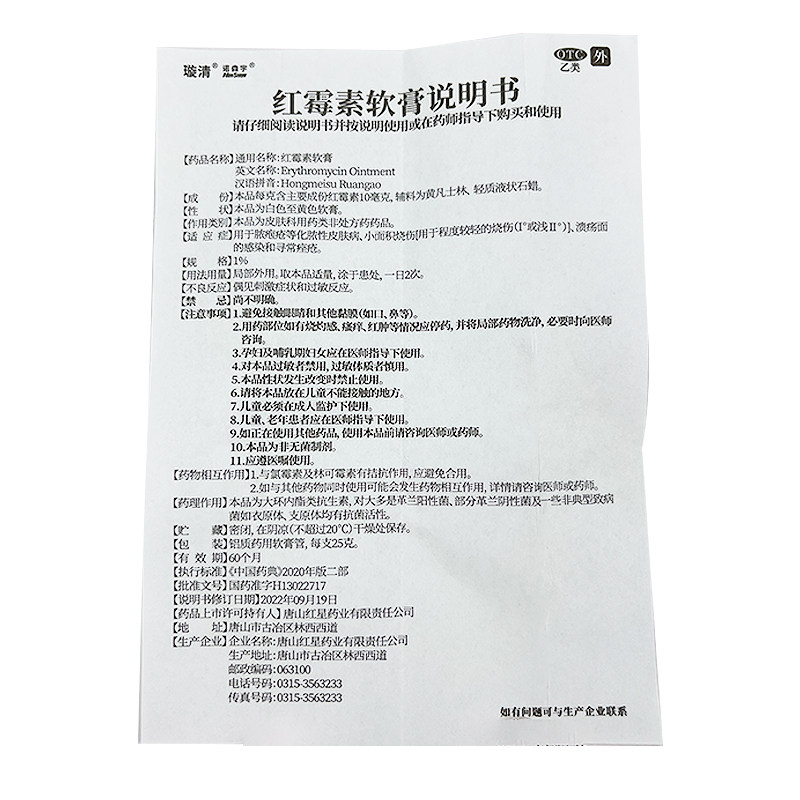 📚 璇清诺森宇红霉素软膏25g烫伤化脓性皮肤病溃疡溃面感染