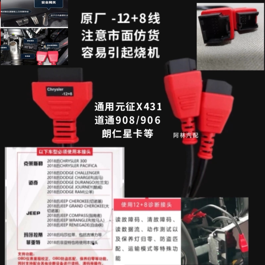 📚 原厂克莱斯勒-12+8诊断线接头玛莎拉蒂吉普用于道通908元征X431等