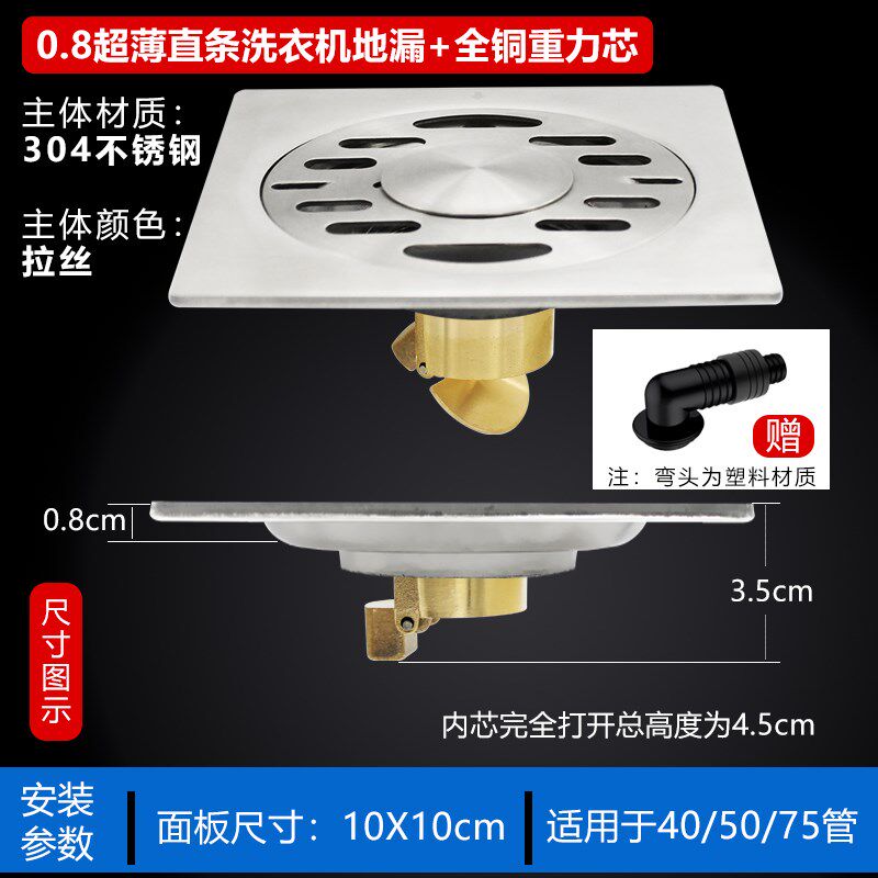 📚 304不锈钢超薄地漏平移位50管洗衣机防臭卫生间极薄40口径10公分
