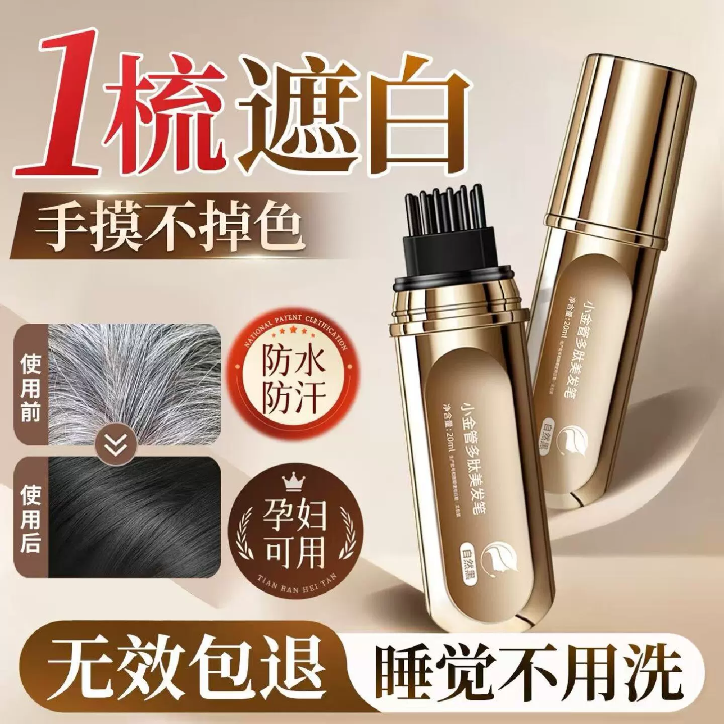 📚 染发笔遮白发纯植物不掉色美发棒遮盖白发神器一次性官方旗舰正品