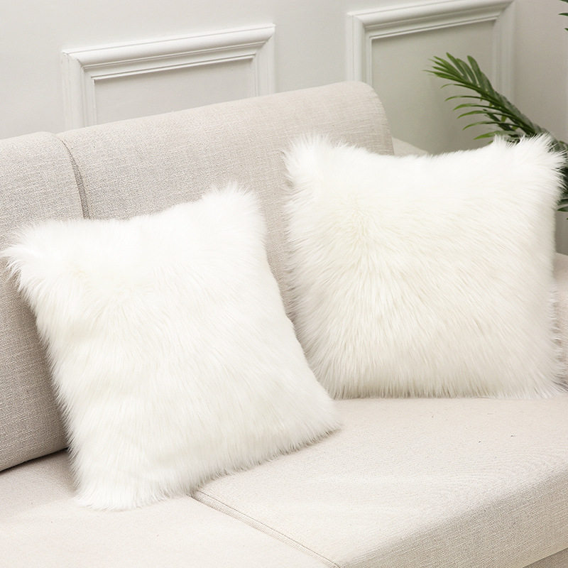 📚 Plush pillowcase sofa cushion cover long hair pillow case