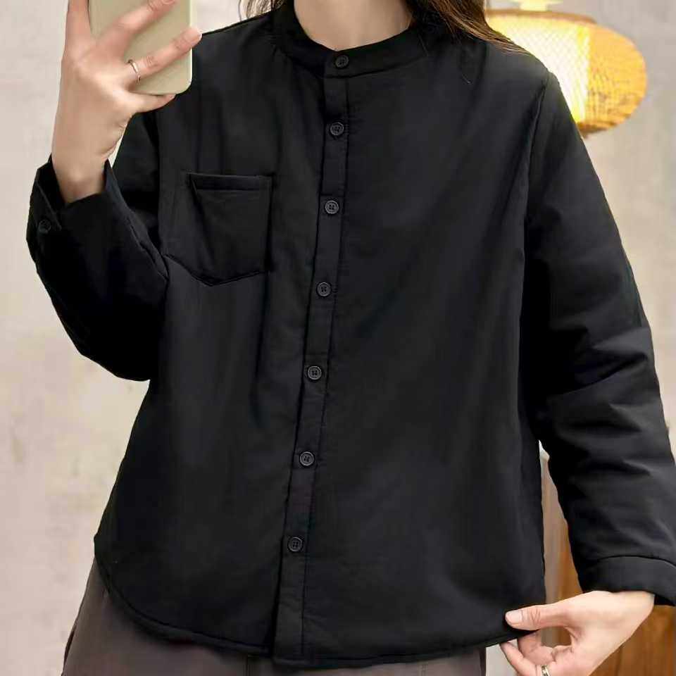 📚 2025全棉衬衫夹棉圆领长袖女士保暖休闲百搭棉服内搭外穿秋冬上衣