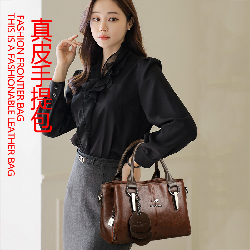 📚 袋鼠真皮女包手提包女士包包2025新款斜挎单肩包大容量妈妈包软皮