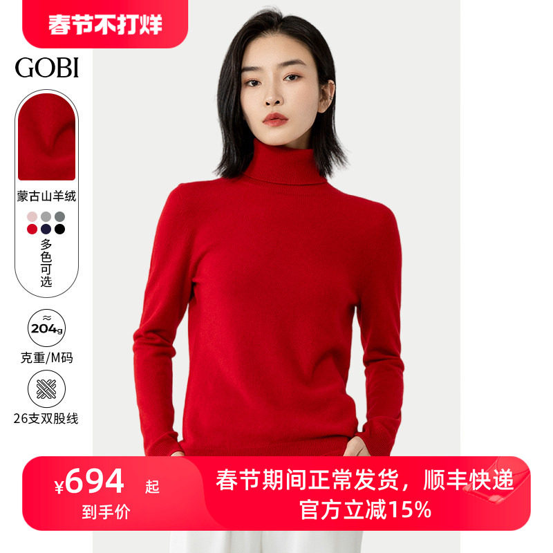 📚 GOBI戈壁秋冬高领双翻领短款毛衣长袖羊绒衫女士打底针织衫WK05
