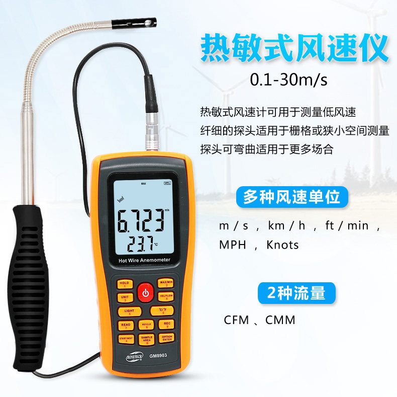 📚 标智GM8903热敏式风速仪风量仪高精度微风测量仪热线测风仪风速计