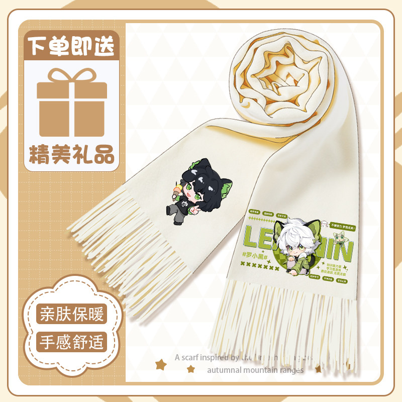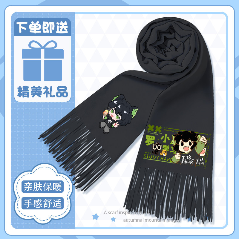 📚 可爱罗小黑卡通围巾学生动漫周边百搭秋冬防寒保暖围脖仿毛绒礼物