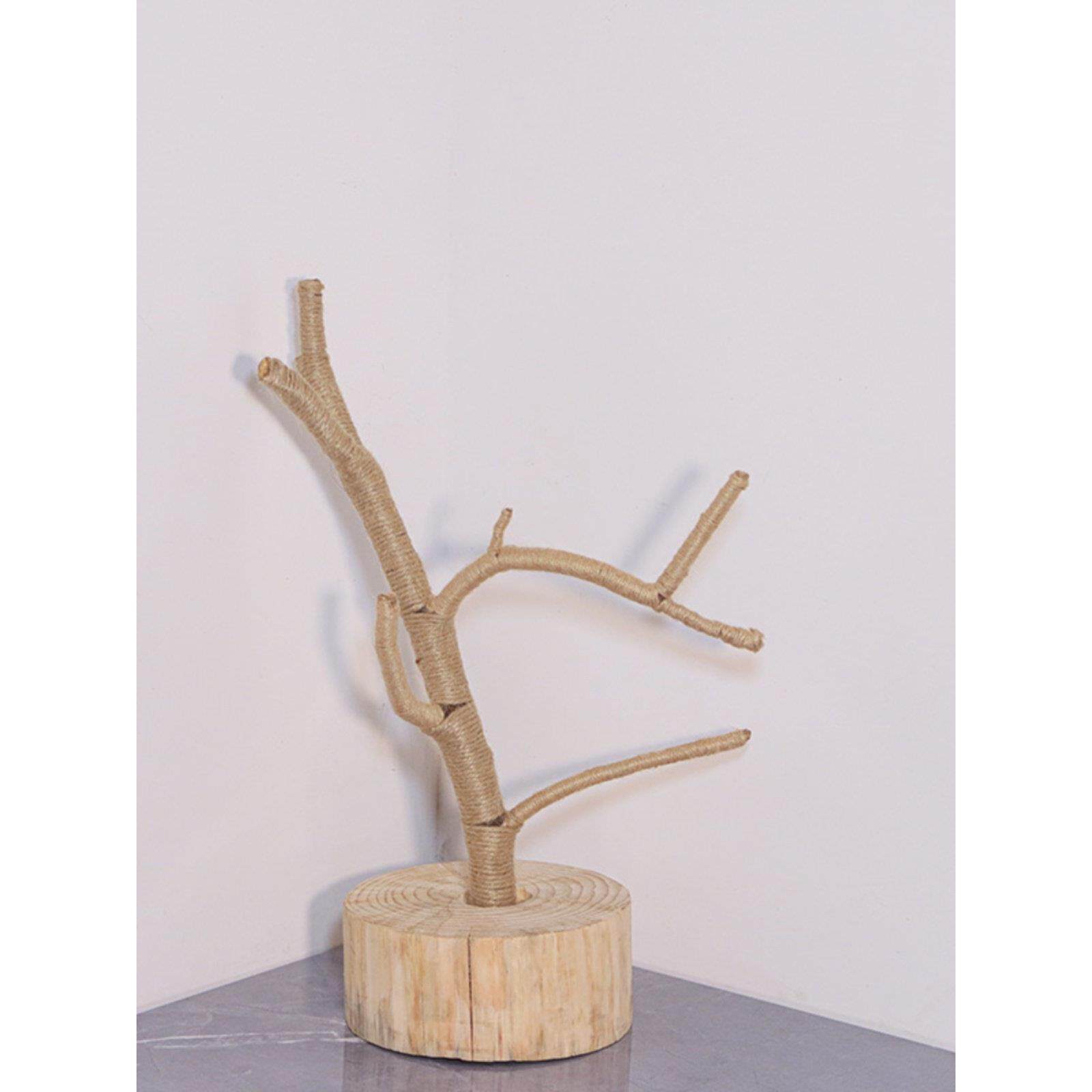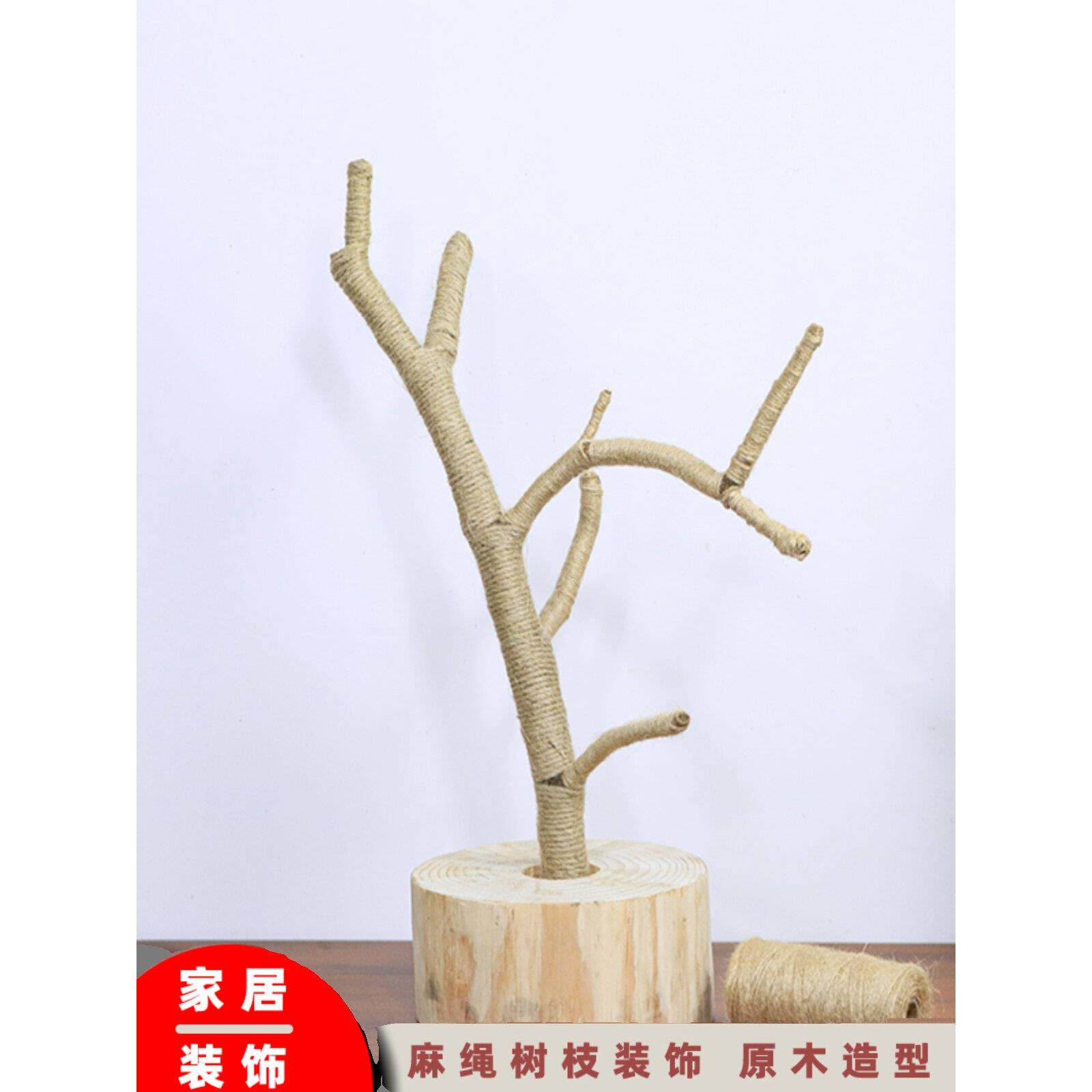 📚 原木树杈带底托摆件树枝 书架客厅茶几摆设 手工麻绳装饰实木支架