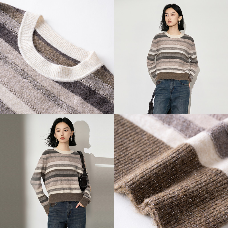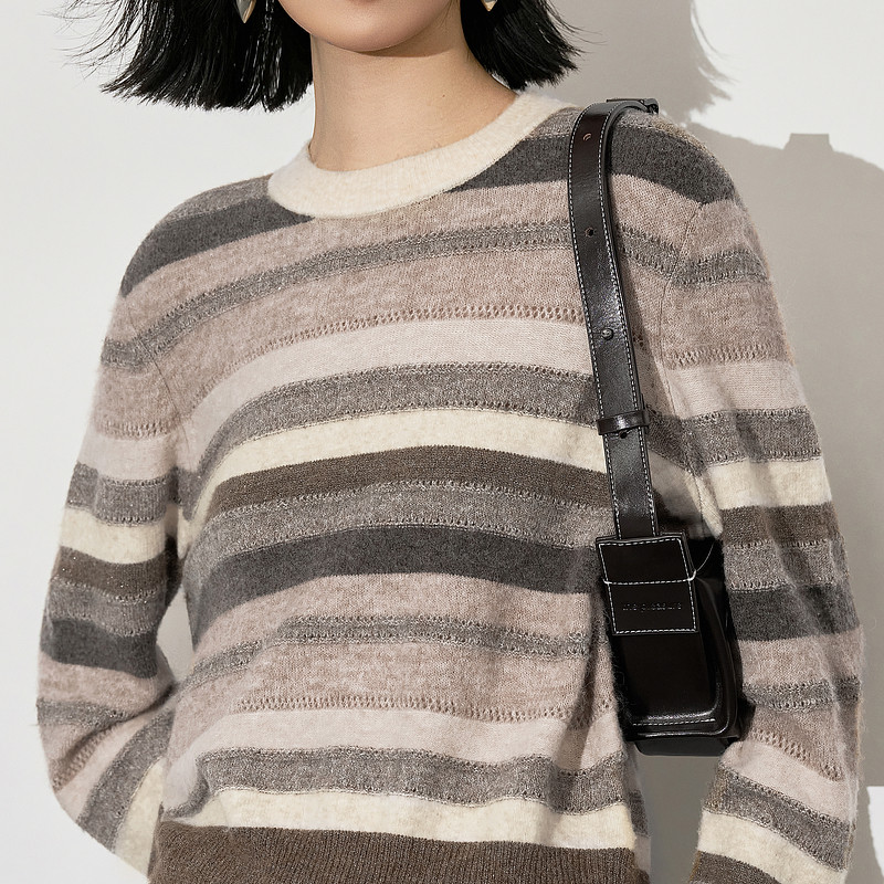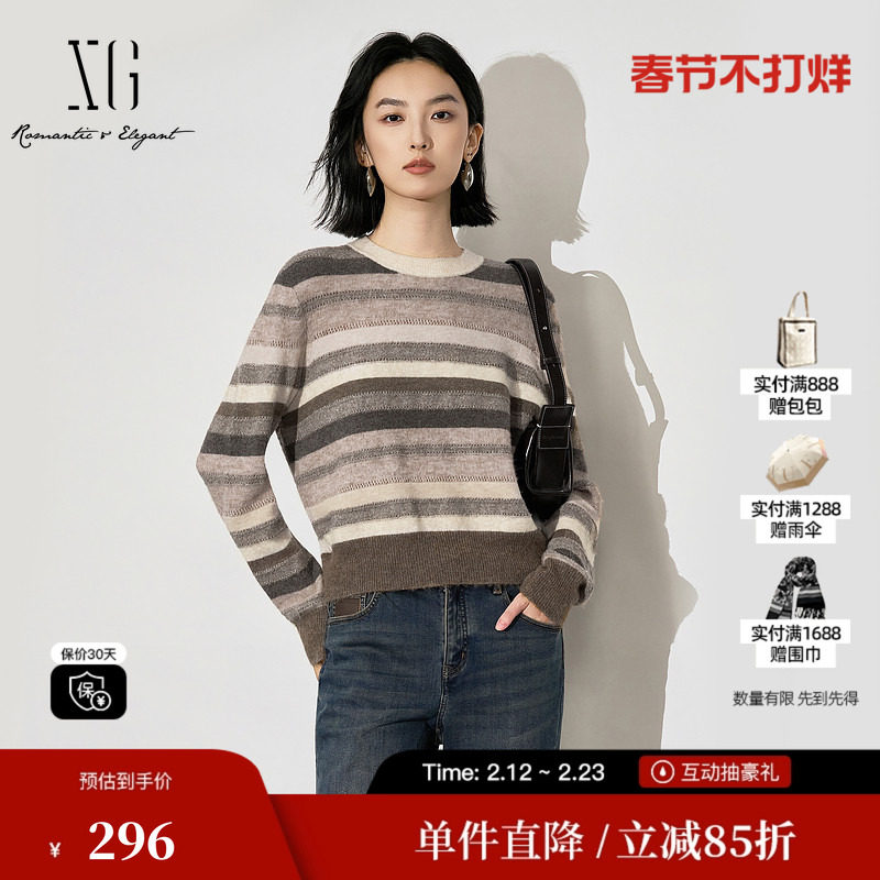 📚 XG/雪歌XK411050B299条纹长袖毛针织衫2025冬季新款羊驼毛毛衫女