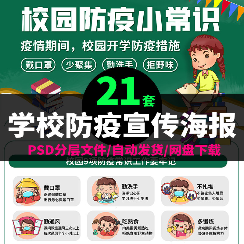 📚 幼儿园宣传栏知识科普海报学生校园防疫复课指南PSD图片设计素材