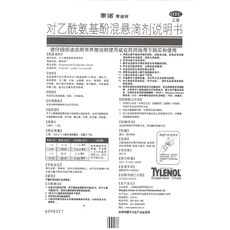 📚 泰诺泰诺林对乙酰氨基酚混悬滴剂20ml*1瓶/盒发热头痛小儿感冒