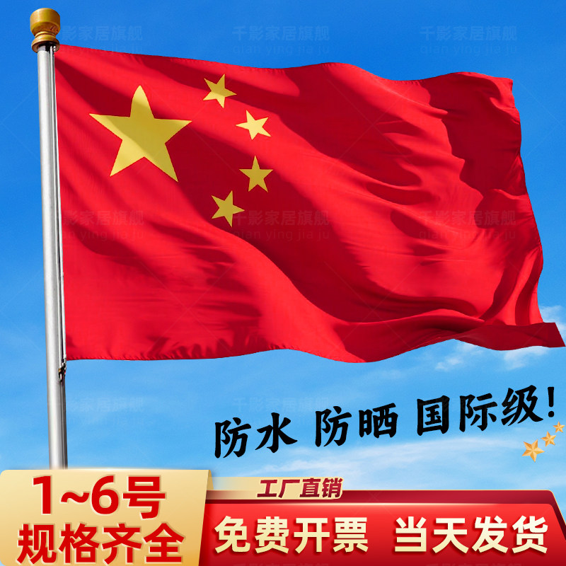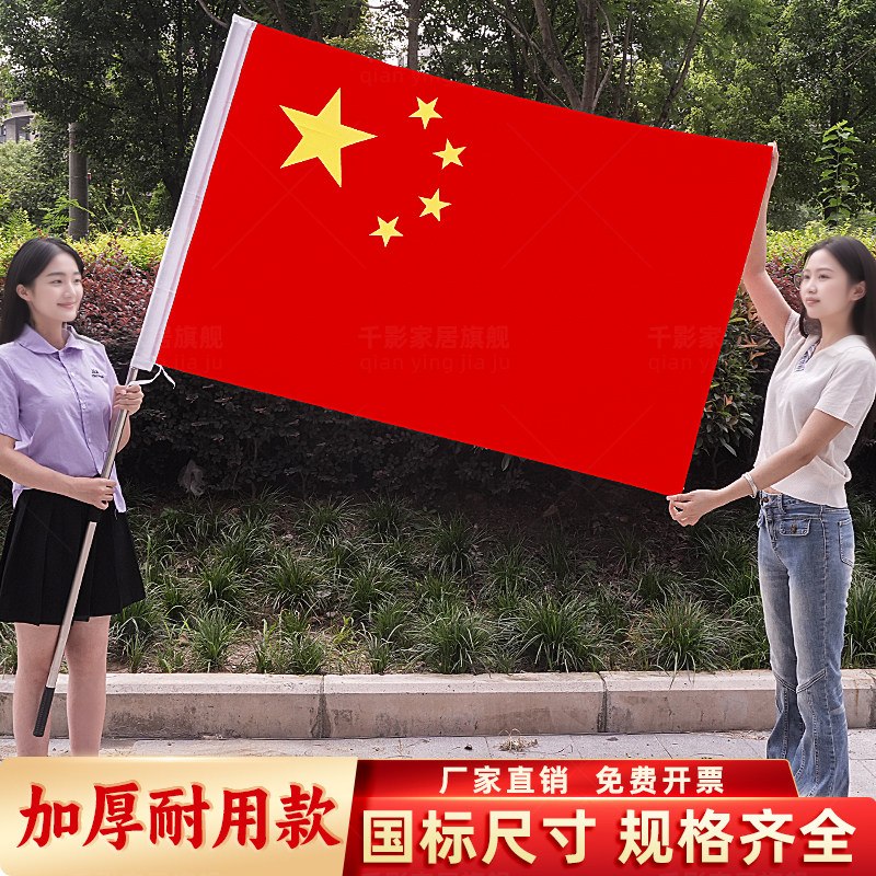 📚 户外国旗红旗1号2号3号4号5号加厚纳米防水防晒五星红旗大号旗子装饰加厚大红旗室外旗杆手挥带杆标准旗帜