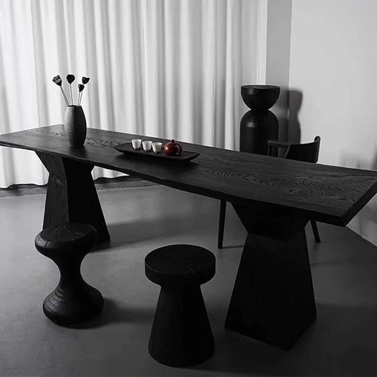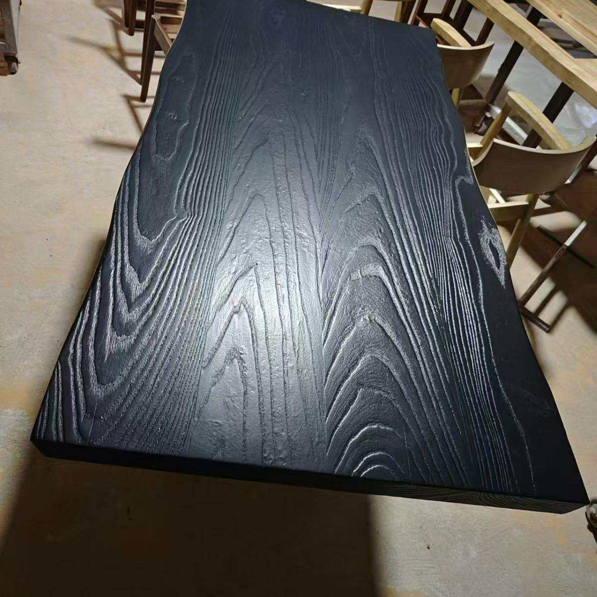 📚 白蜡木碳化板黑色木板实木餐桌茶桌茶台桌面板实木板原木大板桌板