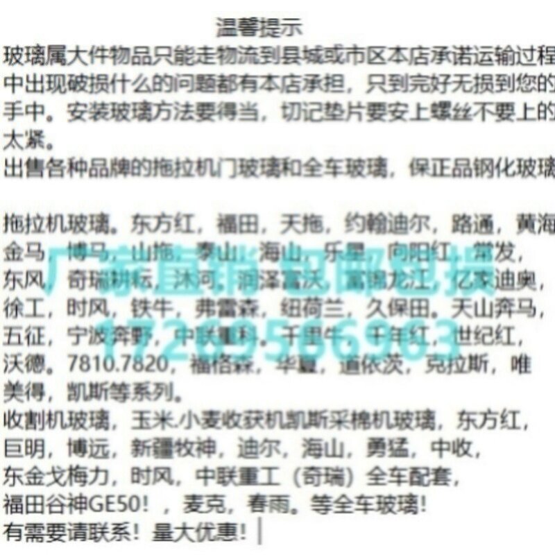 48¥ MF287 06t0Uli1Uil¥ https://m.tb.cn/h.7EHk52x 乐星LS554拖拉机驾驶室前档侧窗后档车门钢化玻璃 --------------------- 【原售价】65元 【现售价】65元。