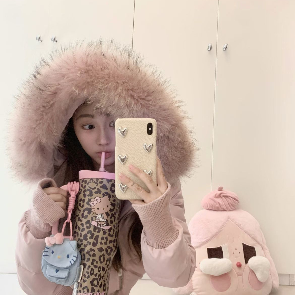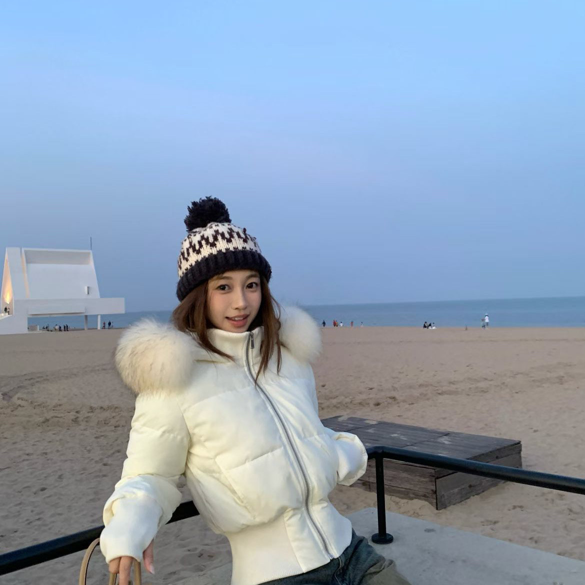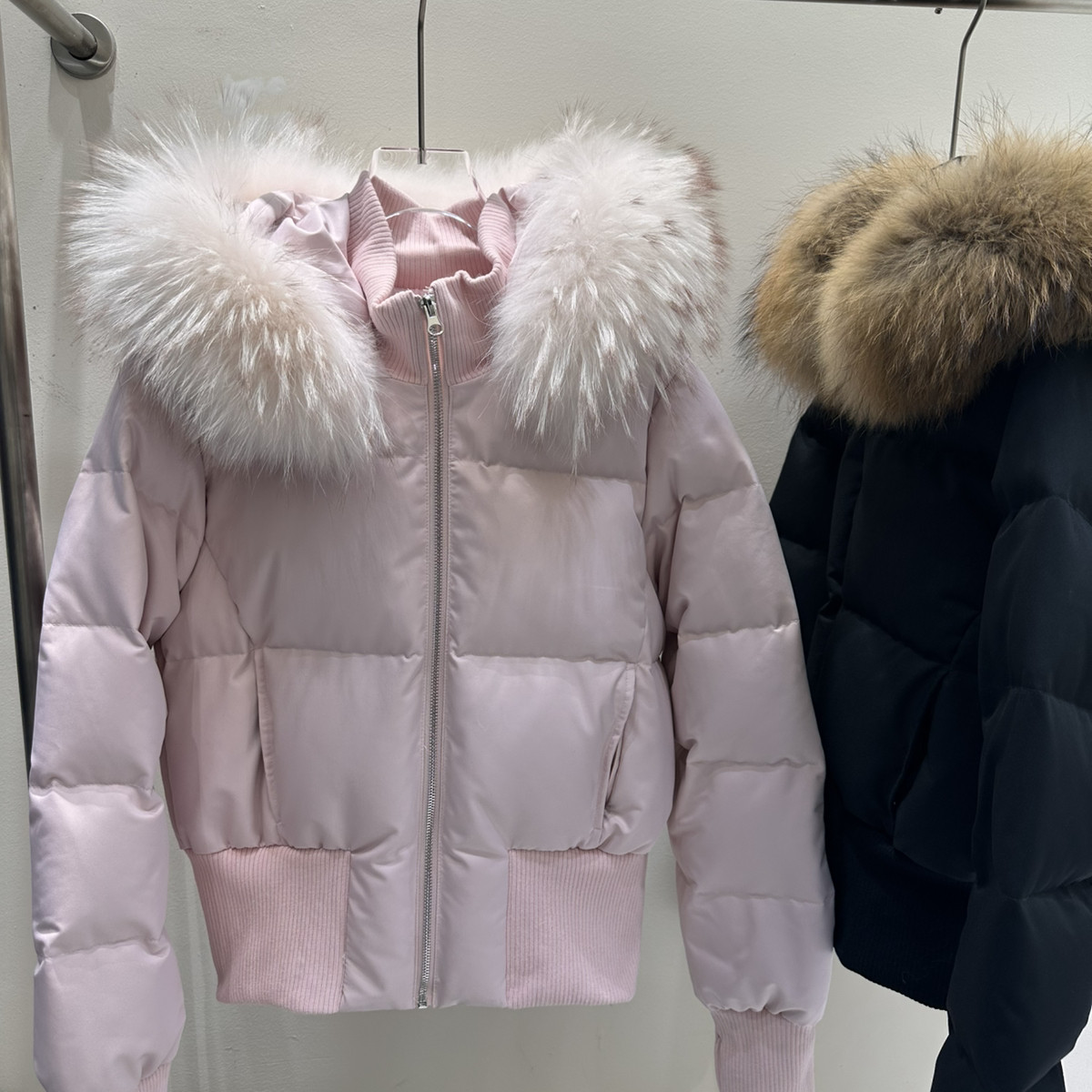 📚 泊曼秀-帽女装收腰短款保暖羽绒服外套(配可拆卸貉子毛真毛毛领)