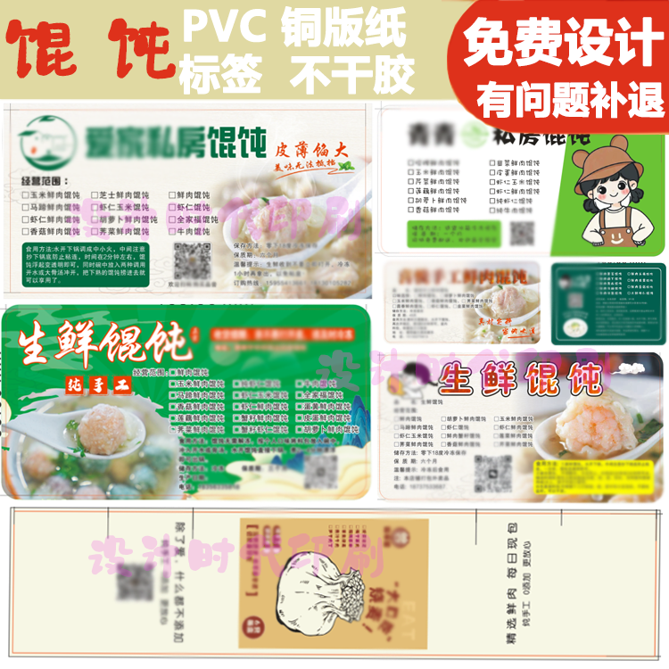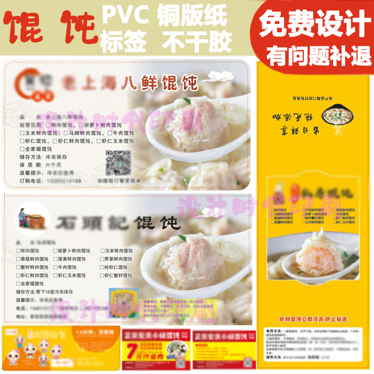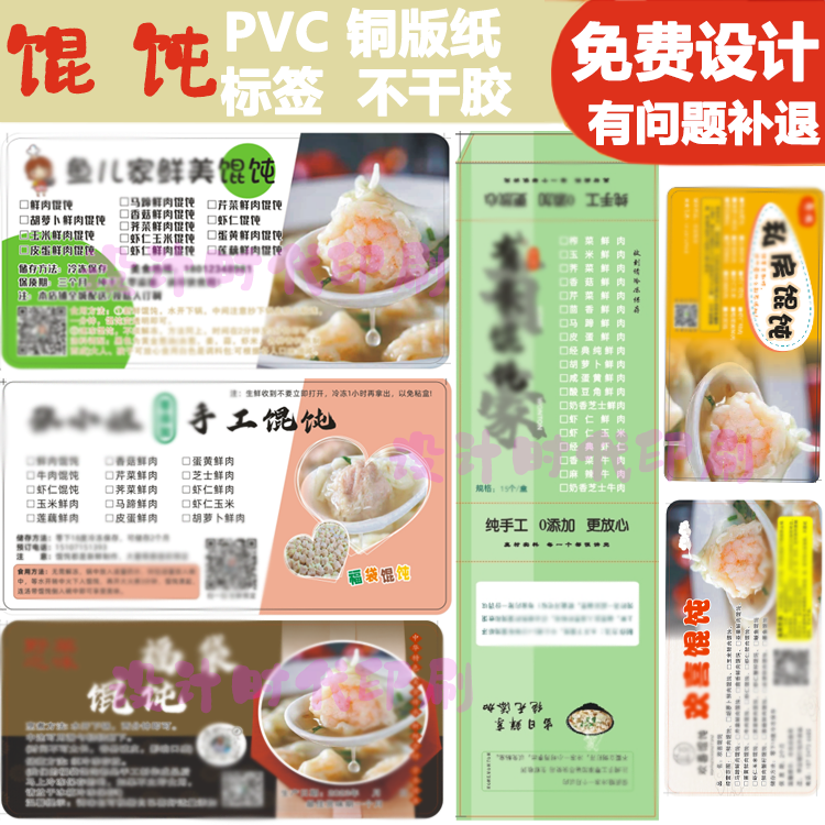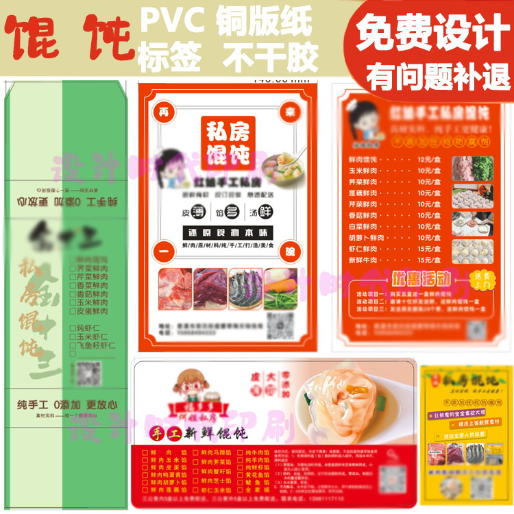 📚 手工私房馄饨打包盒贴纸标签定制免费设计饺子云吞抄手logo不干胶