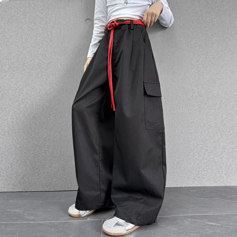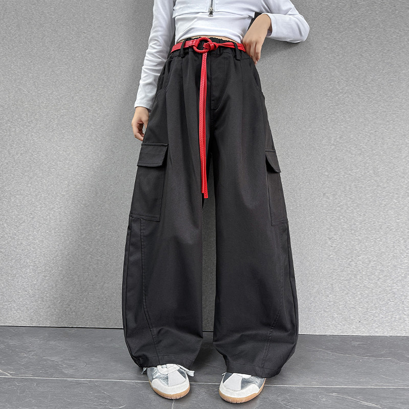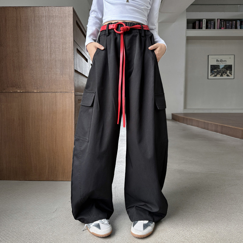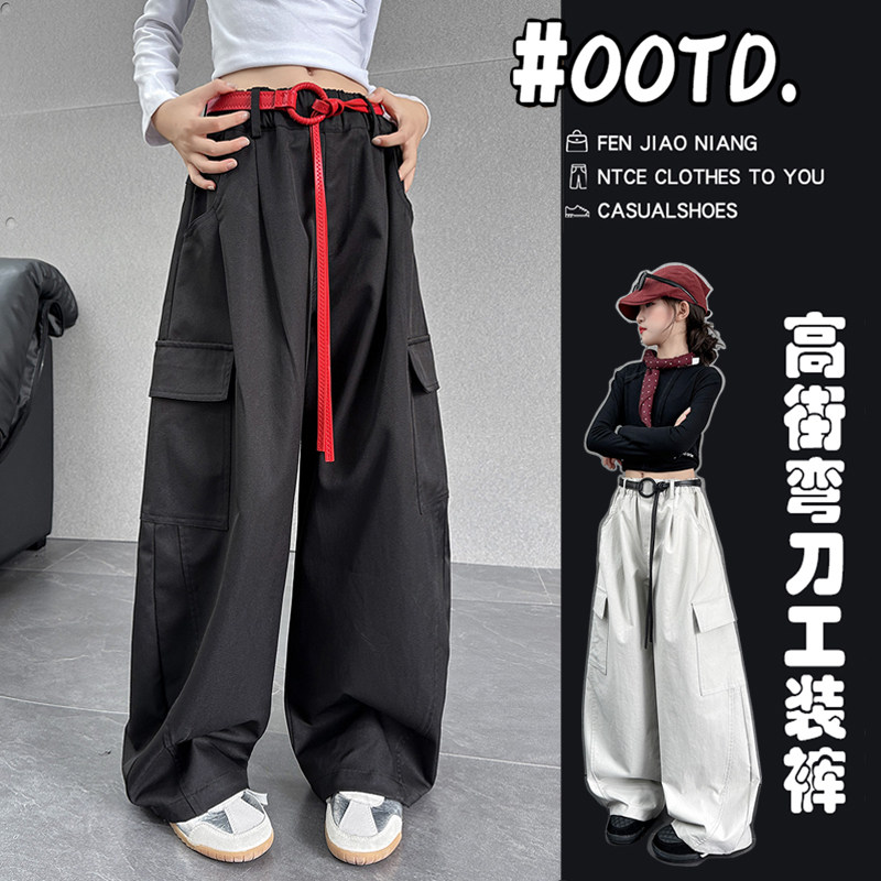 📚 女童高街腰带工装裤女秋季高腰宽松弯刀裤女孩网红休闲阔腿裤子