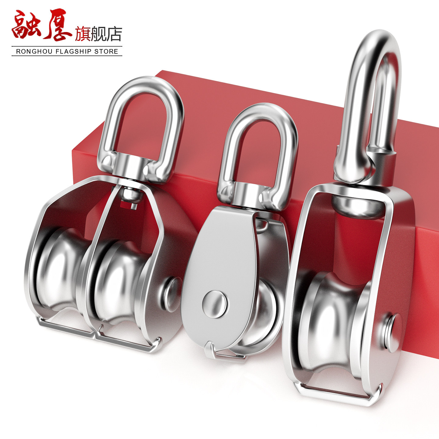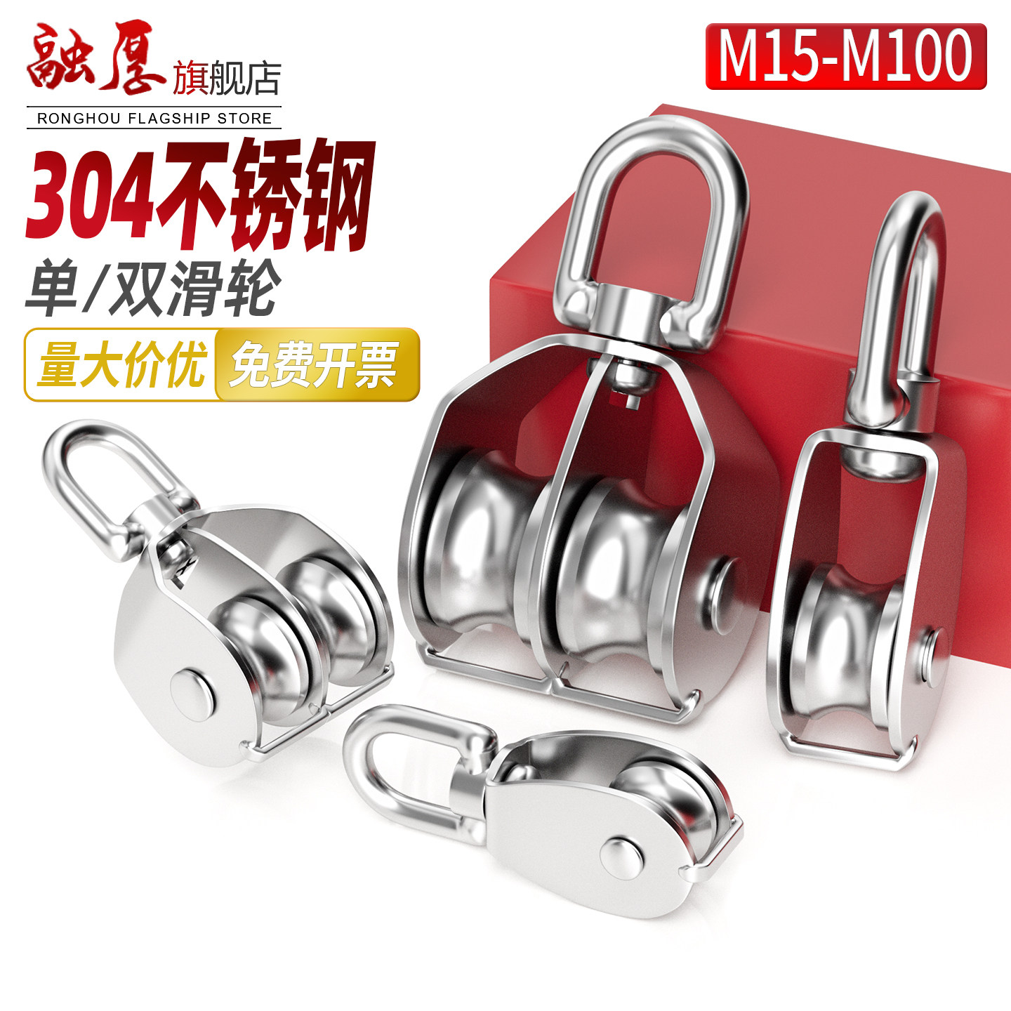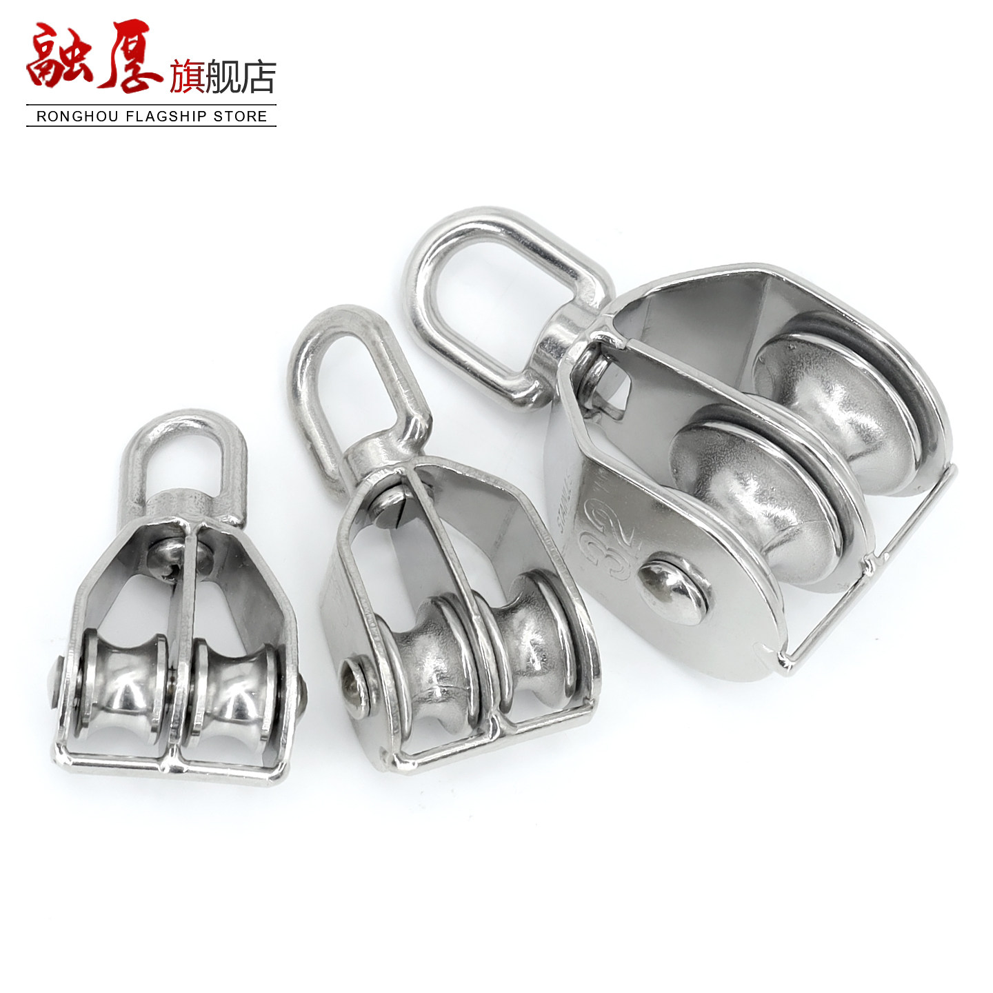 📚 304不锈钢定滑轮吊环滑轮固定重型万向轮钢丝绳U型单双轮子升降轮