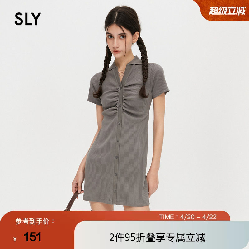 📚 SLY 夏季薄荷曼波风螺纹抽褶基础短款连衣裙女030GSL83-4440