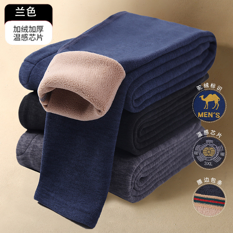 📚 冬季保暖驼绒裤男士抗寒防冻高腰弹力加绒加厚打底裤大码棉裤秋裤