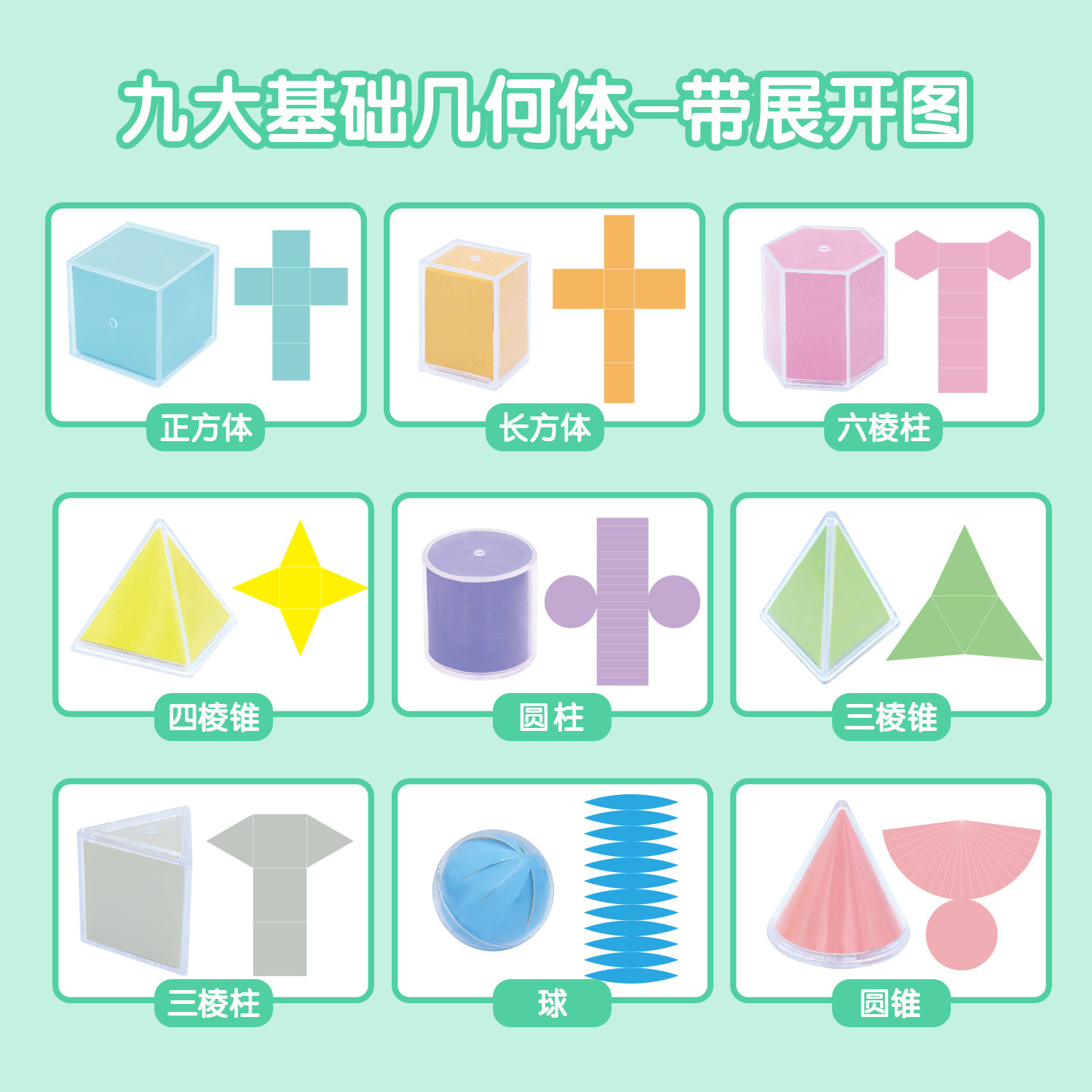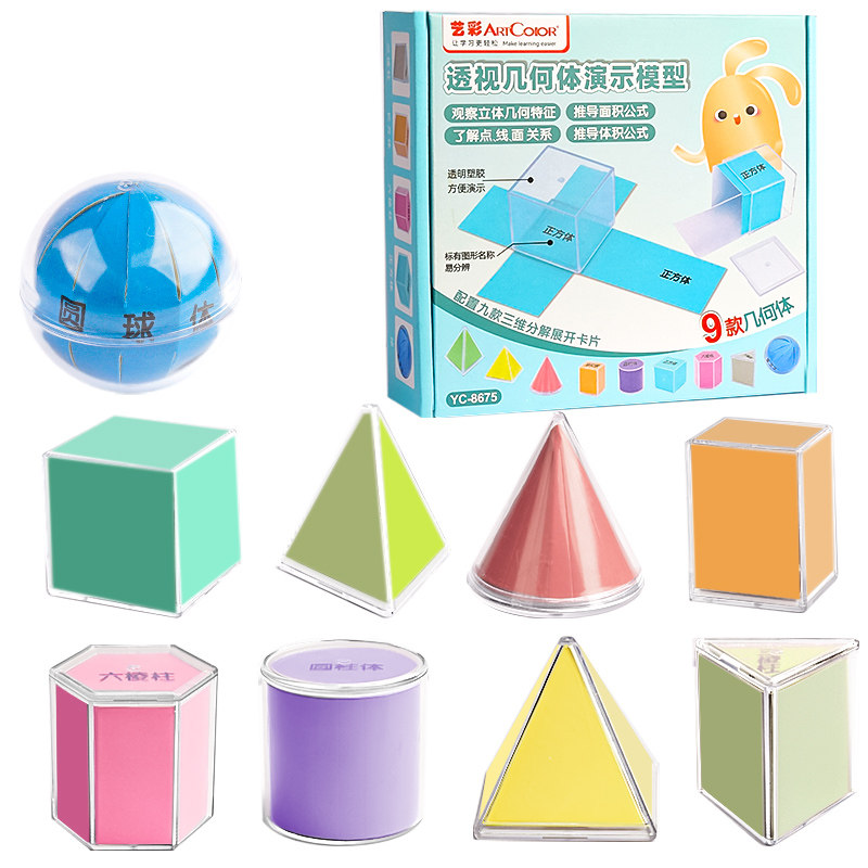 📚 透视几何体演示模型五年级下册透明立体图形教具二年级一年级小学数学圆柱圆锥正方体长方体展开折叠纸学具K1