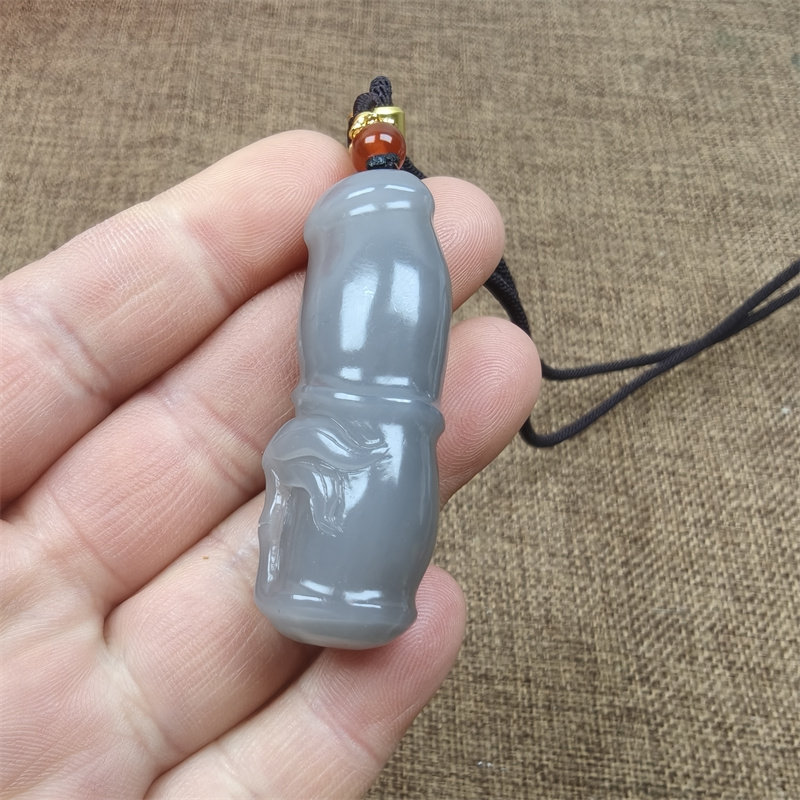 📚 新疆和田玉山料青白玉手工雕刻鲤鱼竹节挂件支持珠宝玉石机构鉴定