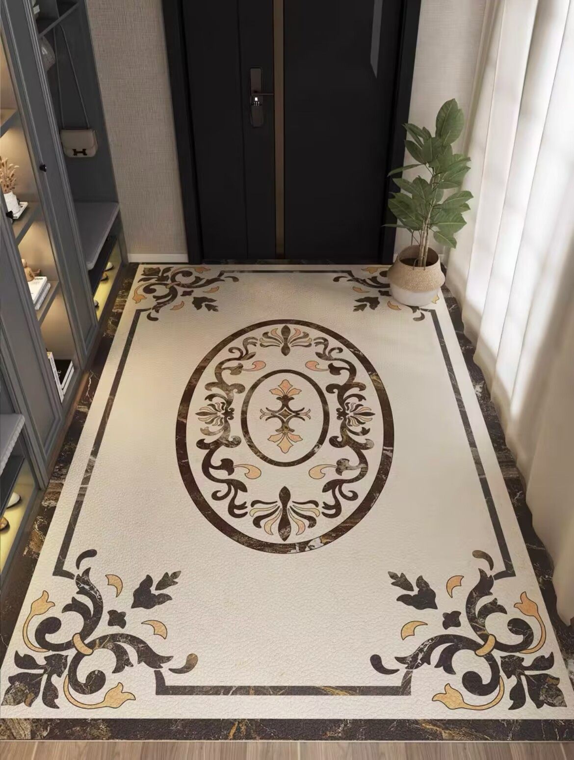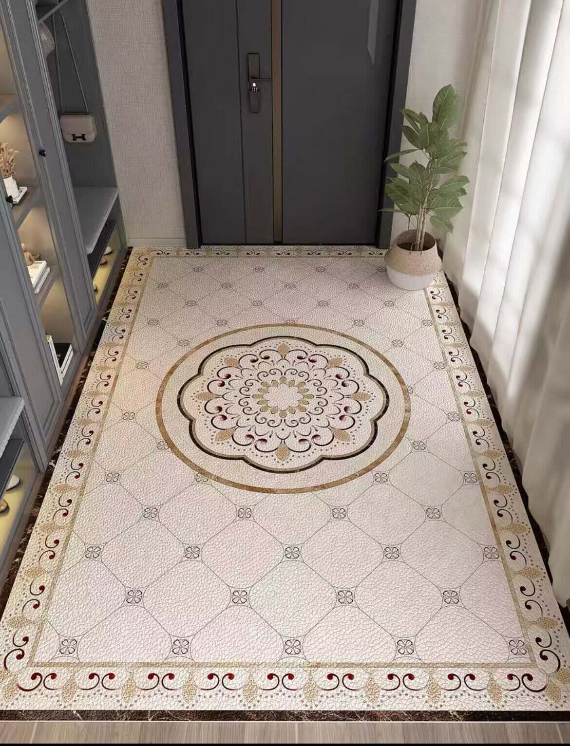 📚 欧式可擦免洗入户门地垫PVC进门脚垫玄关家用防滑皮革可裁剪地垫