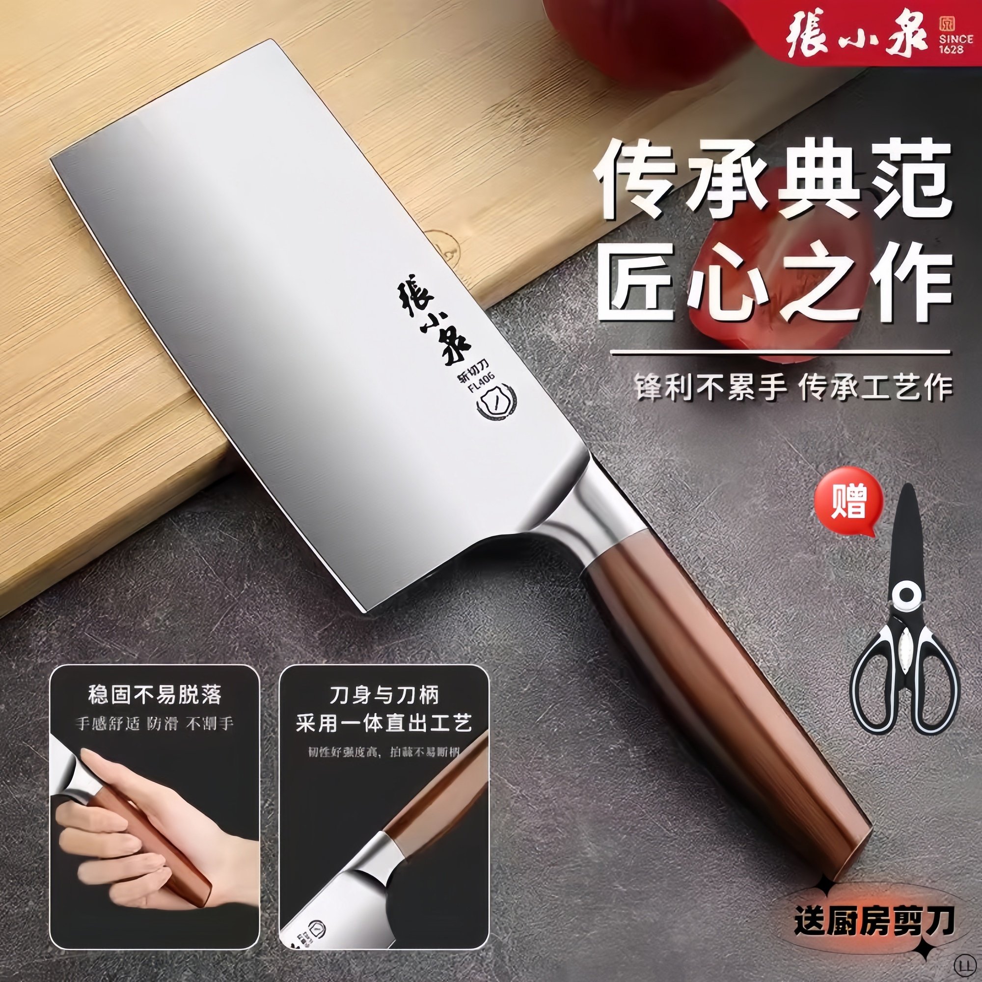 📚 张小泉不锈钢菜刀家用开刃一体锻打厨房刀具锋利耐用传统锻造工艺