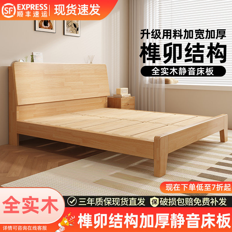 📚 全实木床卯榫结构1米5单人床1米8双人床主卧家用实木出租房用床架