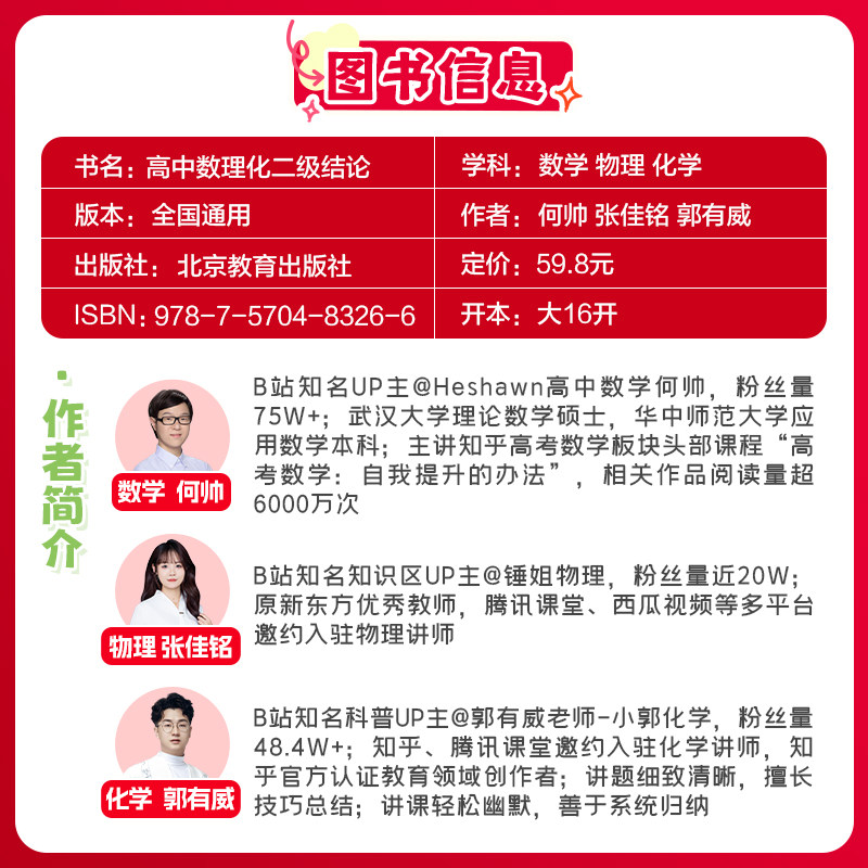 📚 育甲教育高中数理化二级结论高考数学物理化学必备知识点总结快速解题方法高中教辅全国通用