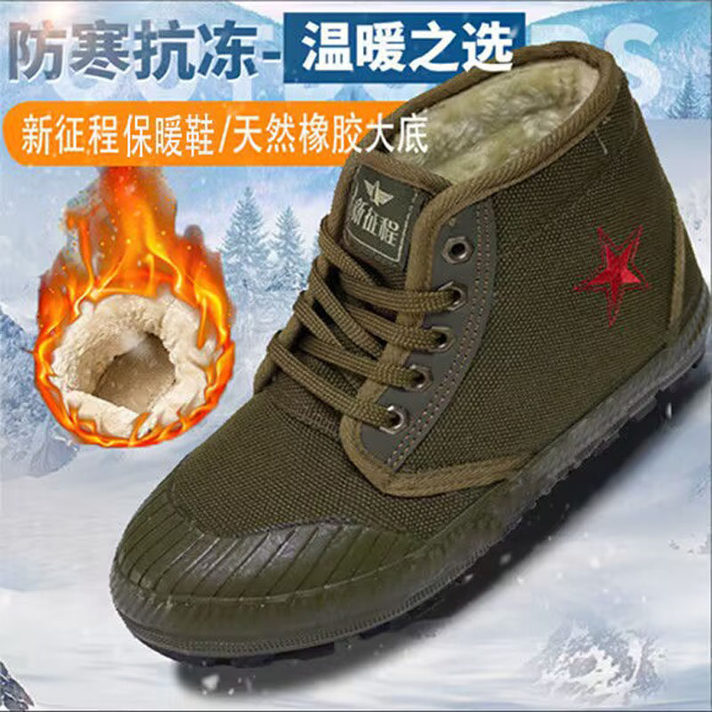 📚 冬季3537解放鞋男女加绒保暖防水高帮干活劳保鞋工地胶鞋军训棉鞋