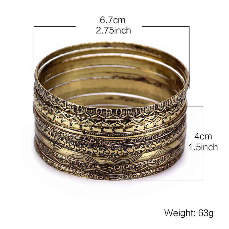 📚 Vintage Pattern 11Pcs/Set Indian Bangles Wo Antique Gold Ba
