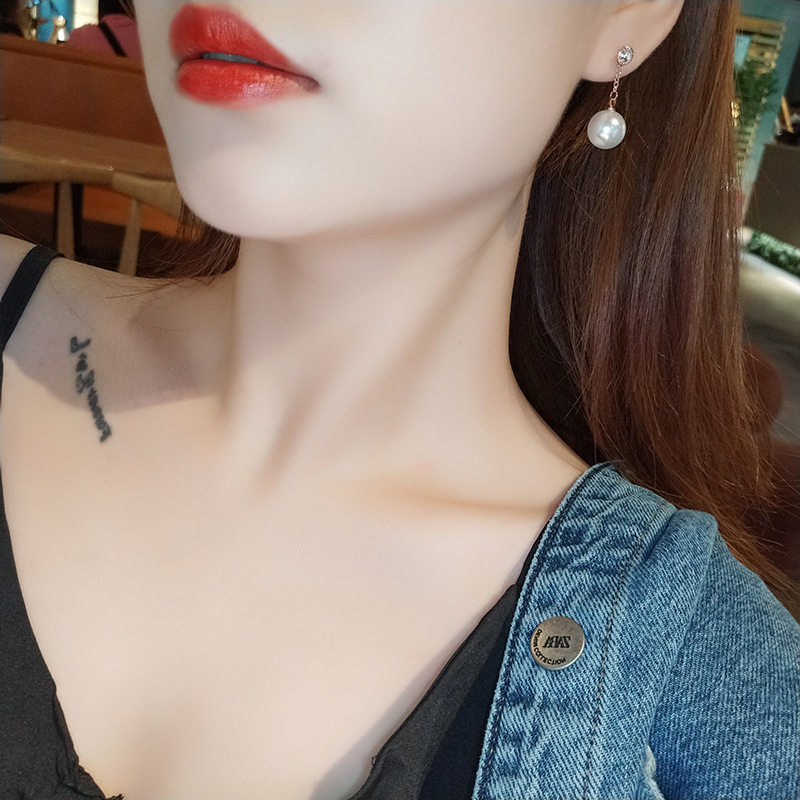 📚 925银针德鲁纳酒店同款耳钉简约韩版气质耳环女网红珍珠复古耳坠