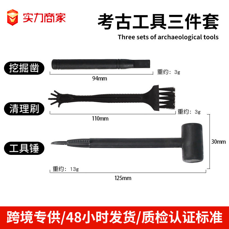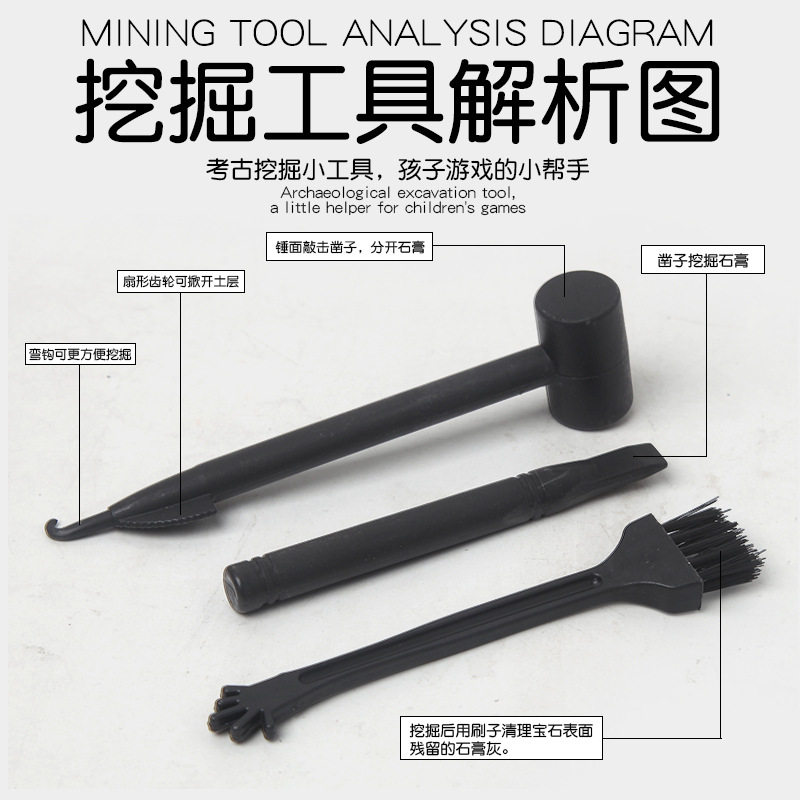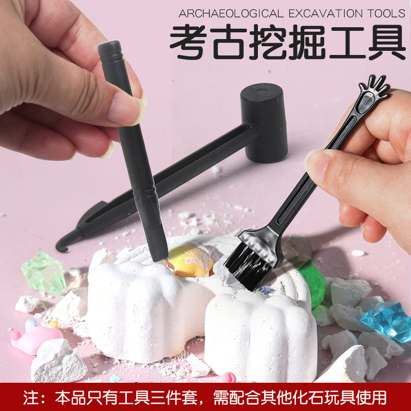 📚 儿童考古挖掘工具恐龙化石挖掘配件三件套刷子锤子凿子玩具