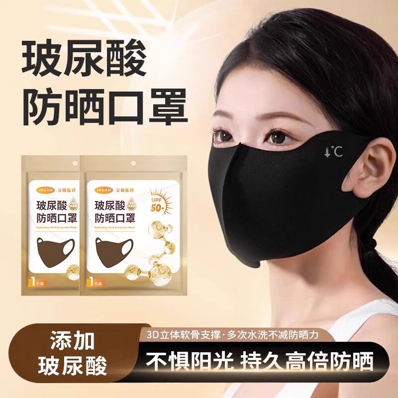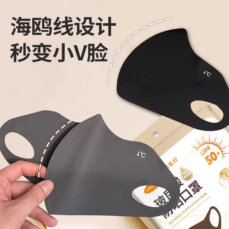 📚 海氏海诺艾暖UPF50+玻尿酸护眼角防晒口罩立体水洗防紫外线高颜值