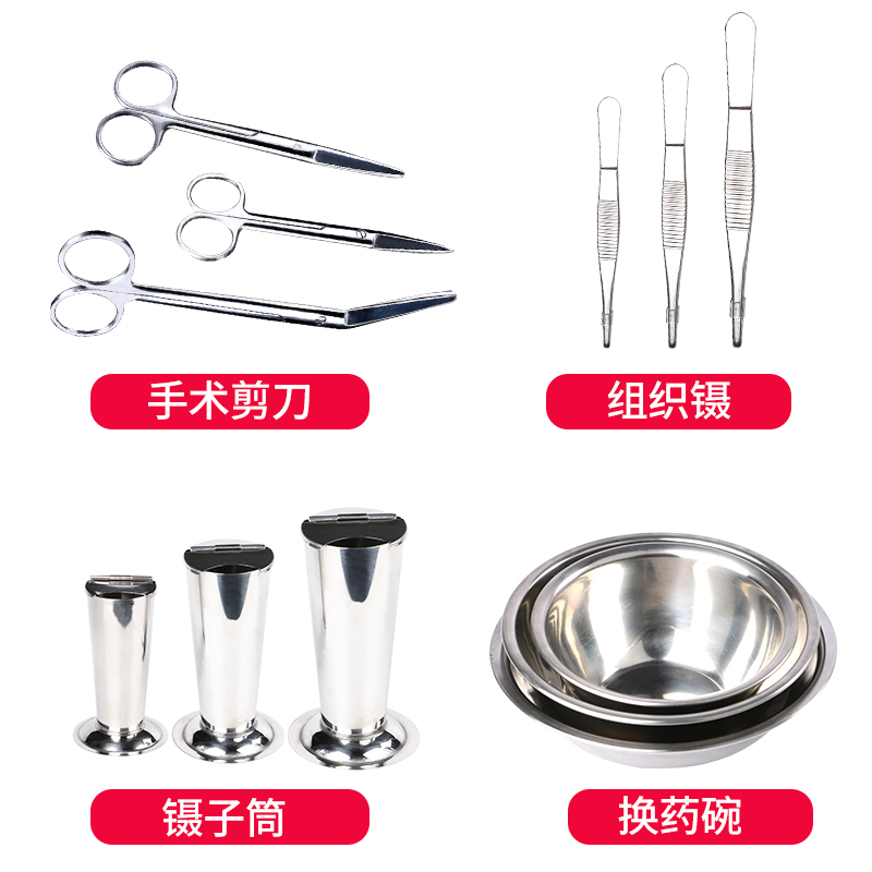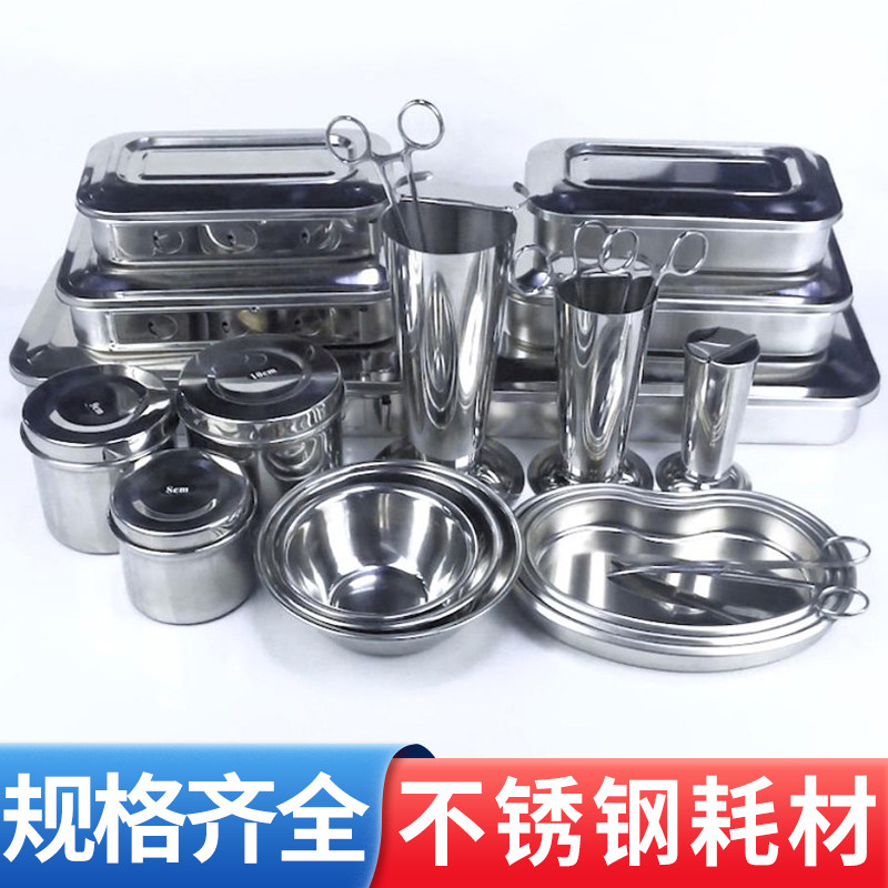 📚 不锈钢用具剪刀镊子筒方盘弯盘换药碗油膏缸棉花筒铝盒针耗材