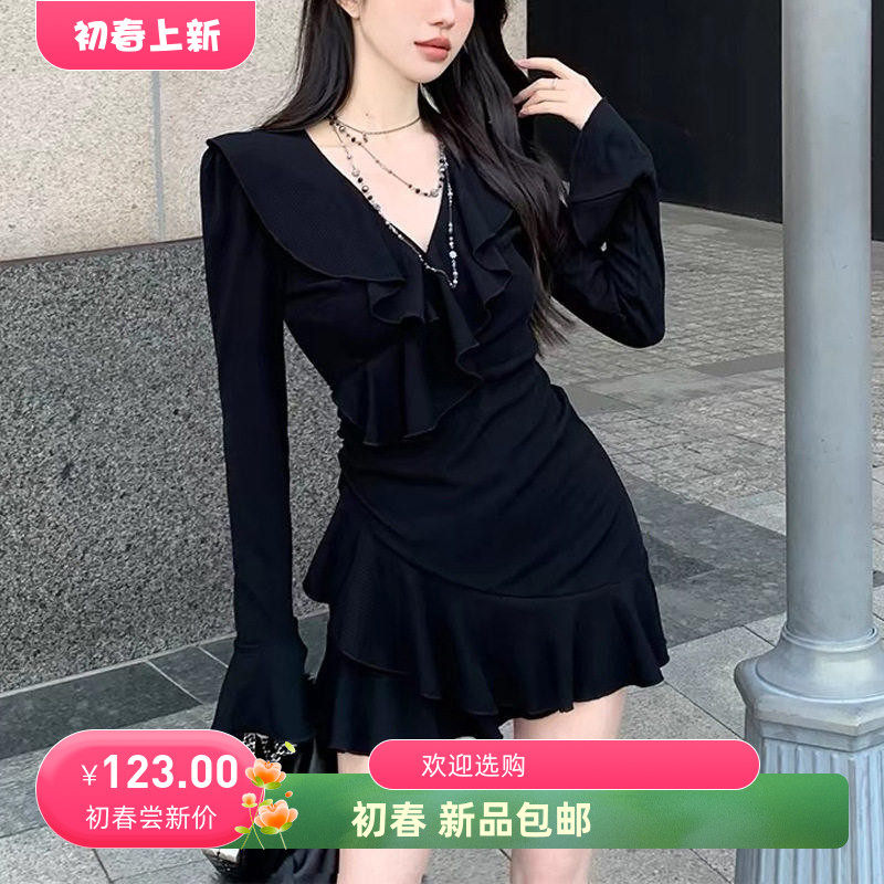 07¥ CZ193 HgF7UGPQke1¥ https://m.tb.cn/h.idbuZ87 设计感荷叶边V领连衣裙女秋冬新款气质修身显瘦收腰a字包臀短裙子 --------------------- 【原售价】123元 【现售价】123元。
