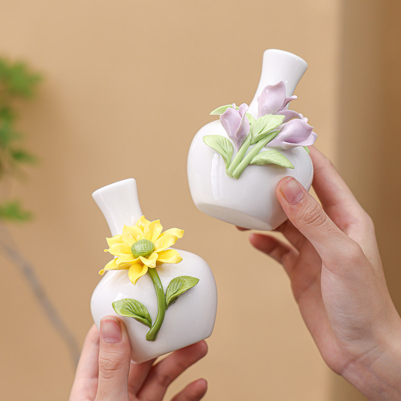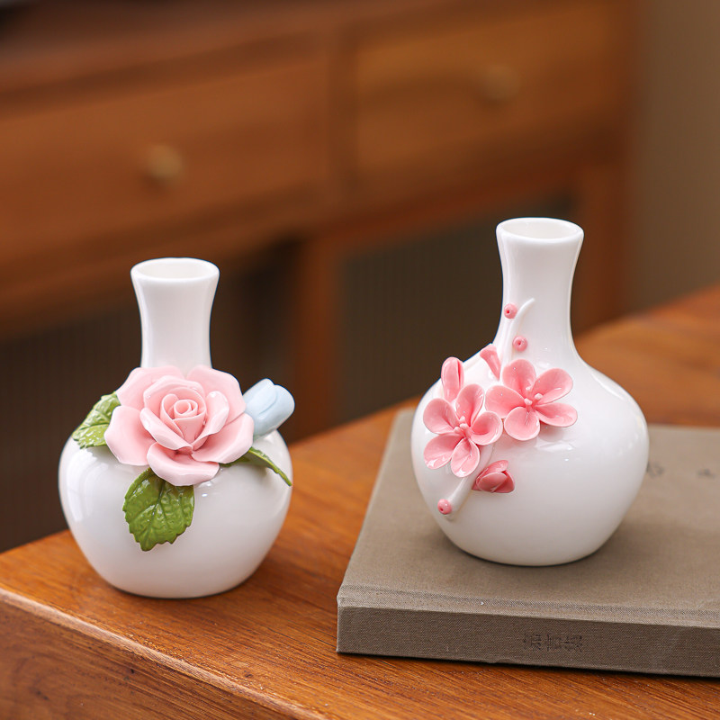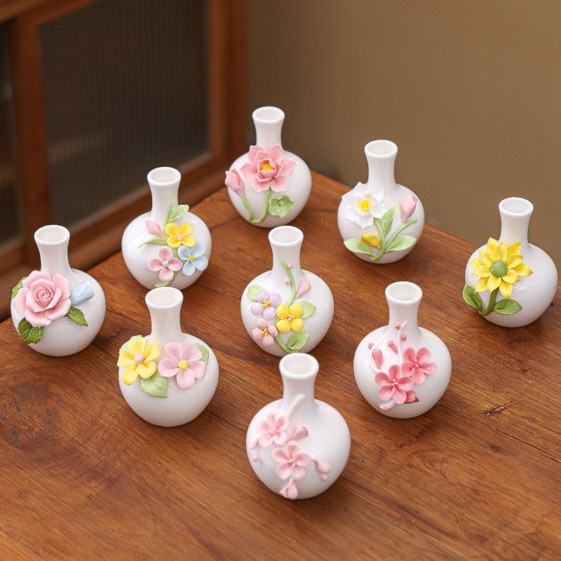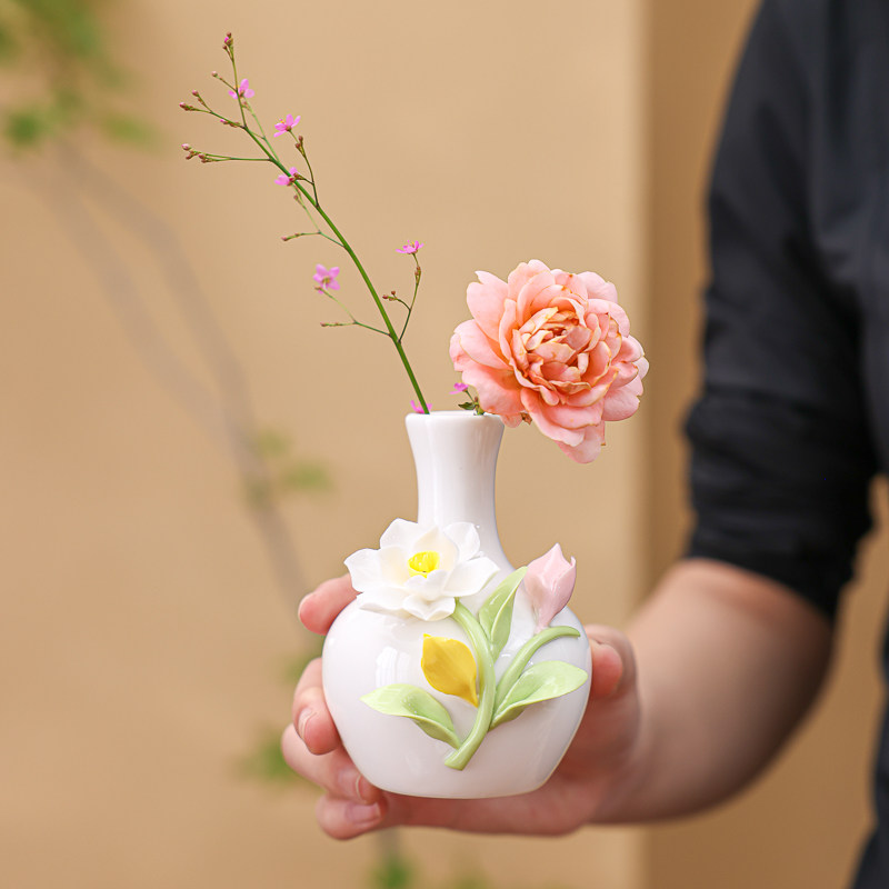 📚 陶瓷手工捏花羊脂玉瓷长颈大肚梅花瓶温润通透描金瓷花器插瓷摆件