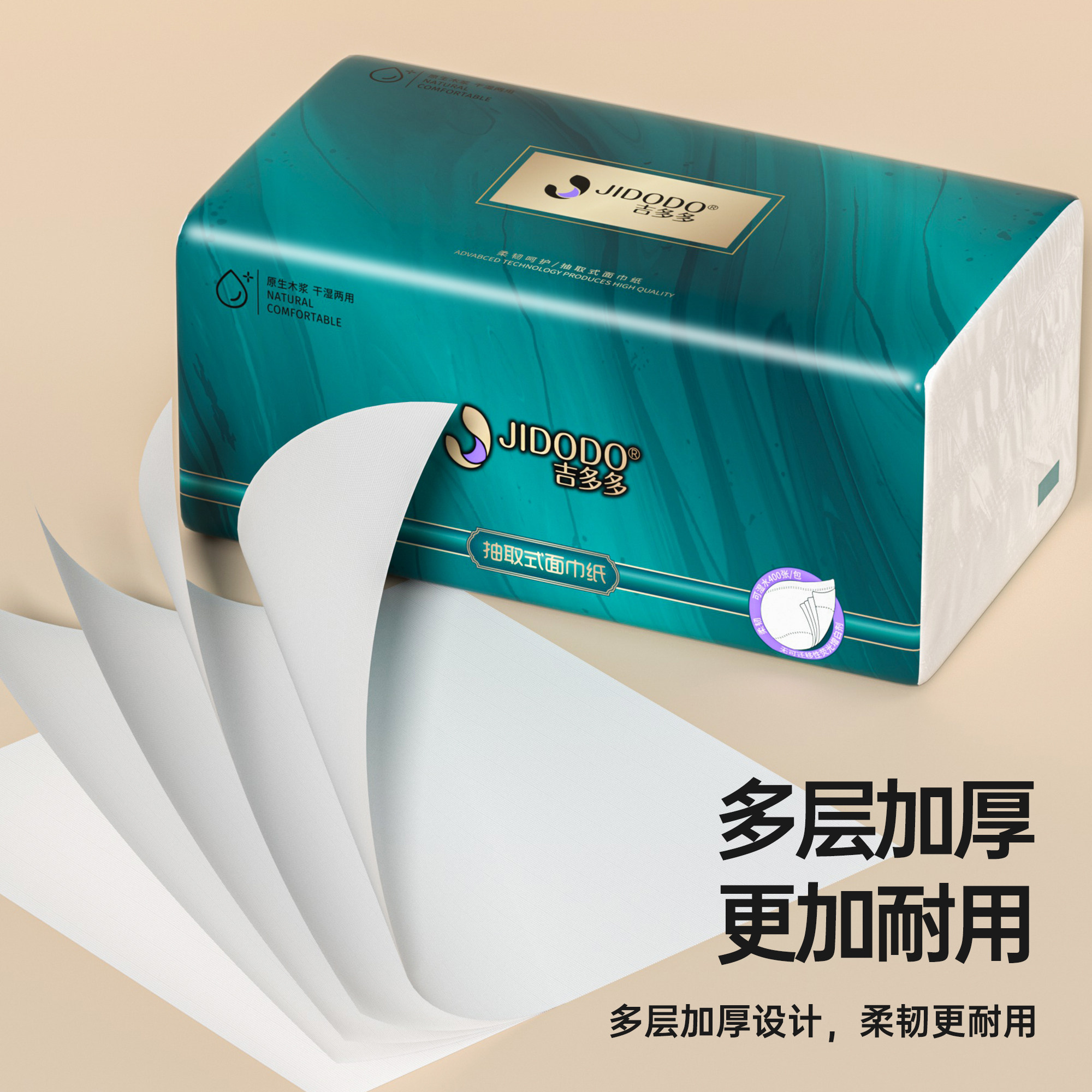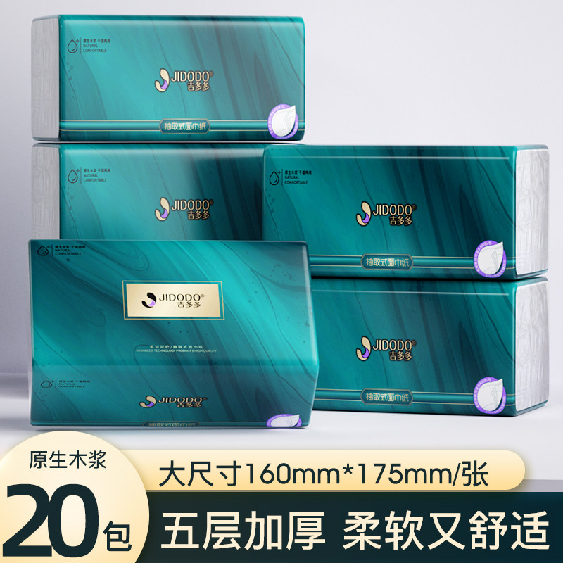 📚 吉多多抽纸400张80抽5层大包纸抽整箱20包纸巾家用实惠装餐巾纸